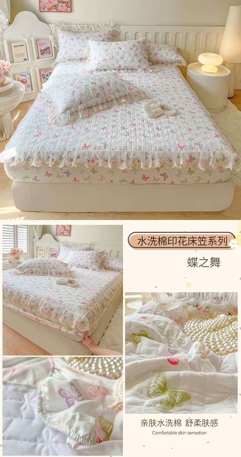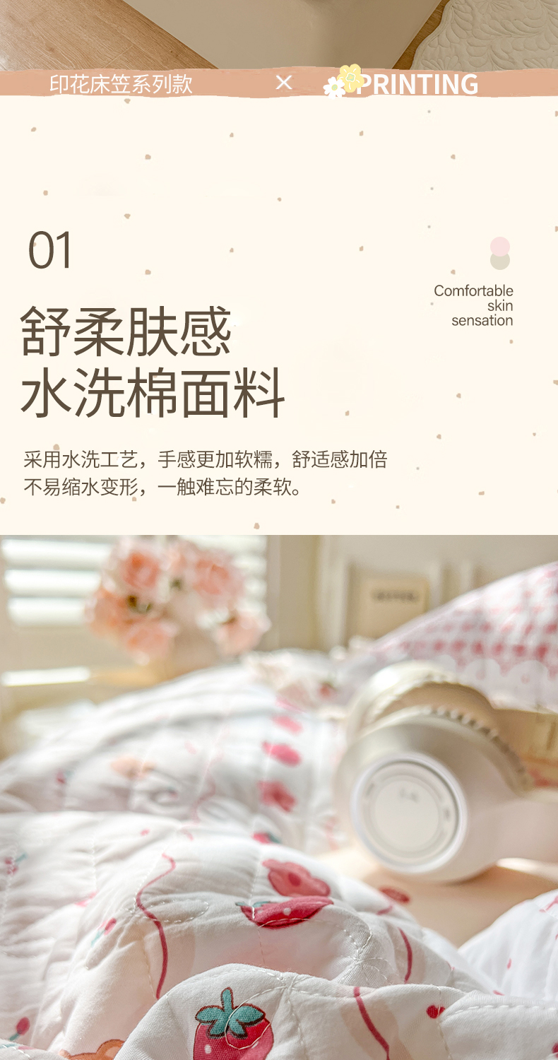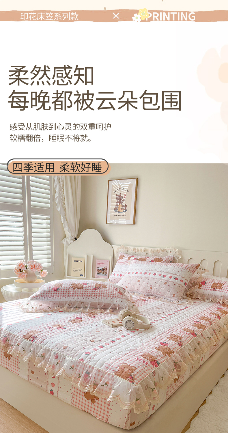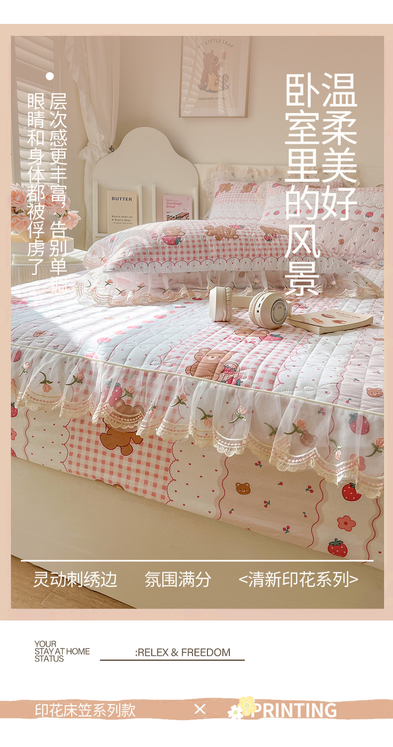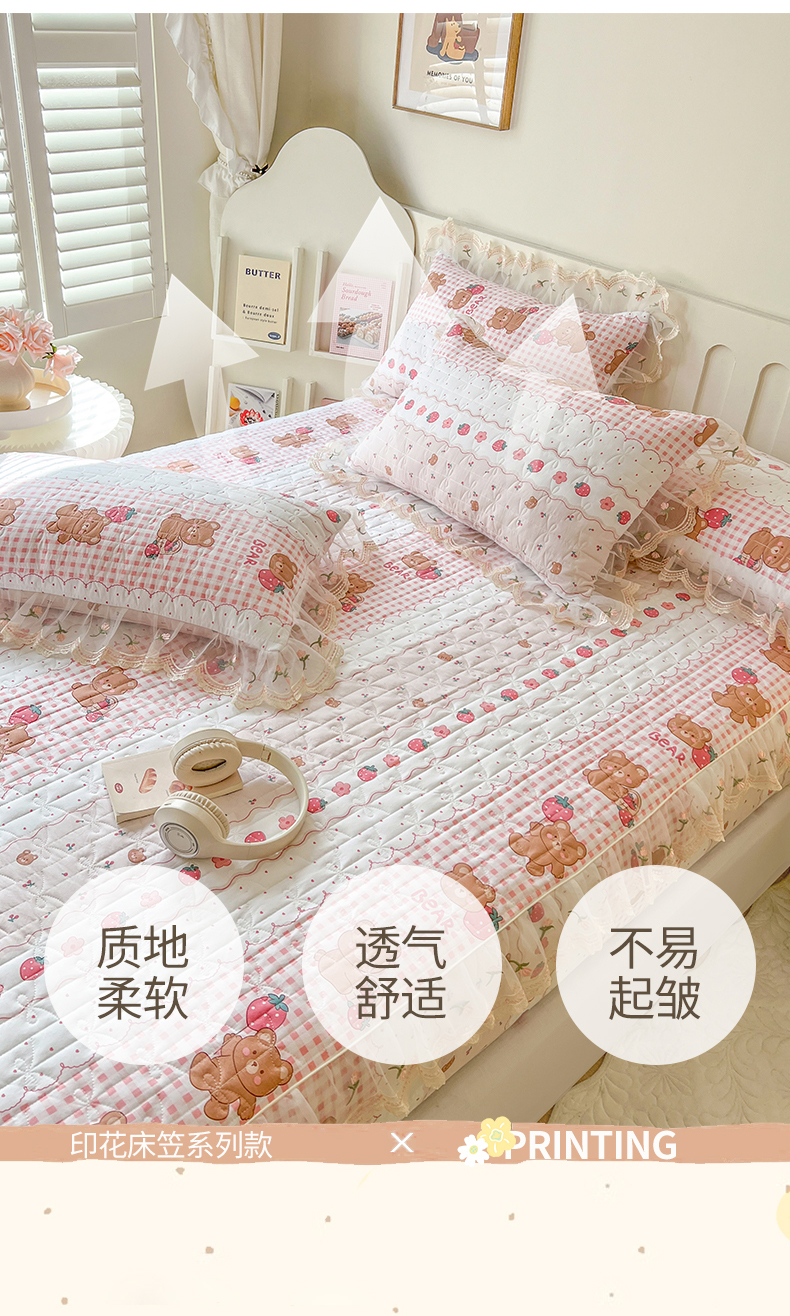 (总)网红馆(ck家纺) 2026新款泡泡棉印花床笠三件套,花儿朵朵,花莫,甜心草莓,小清新,熊宝宝,悠悠花海,紫色恋人