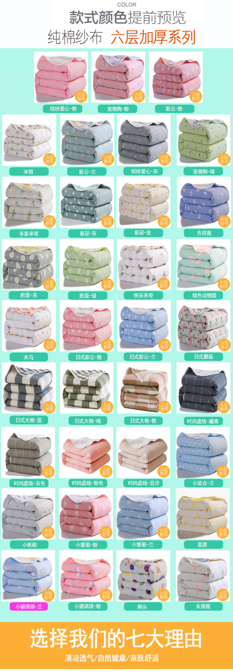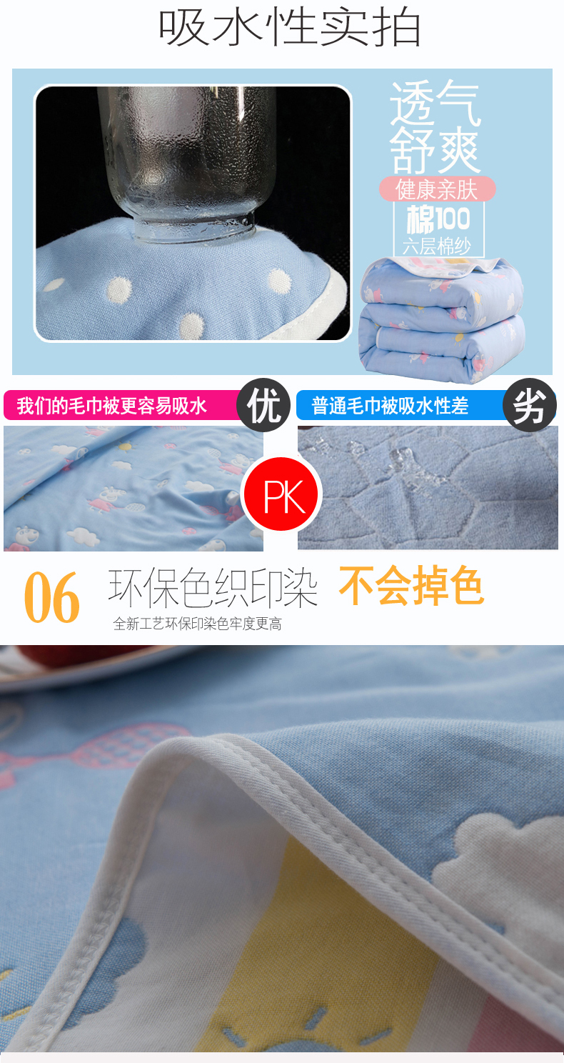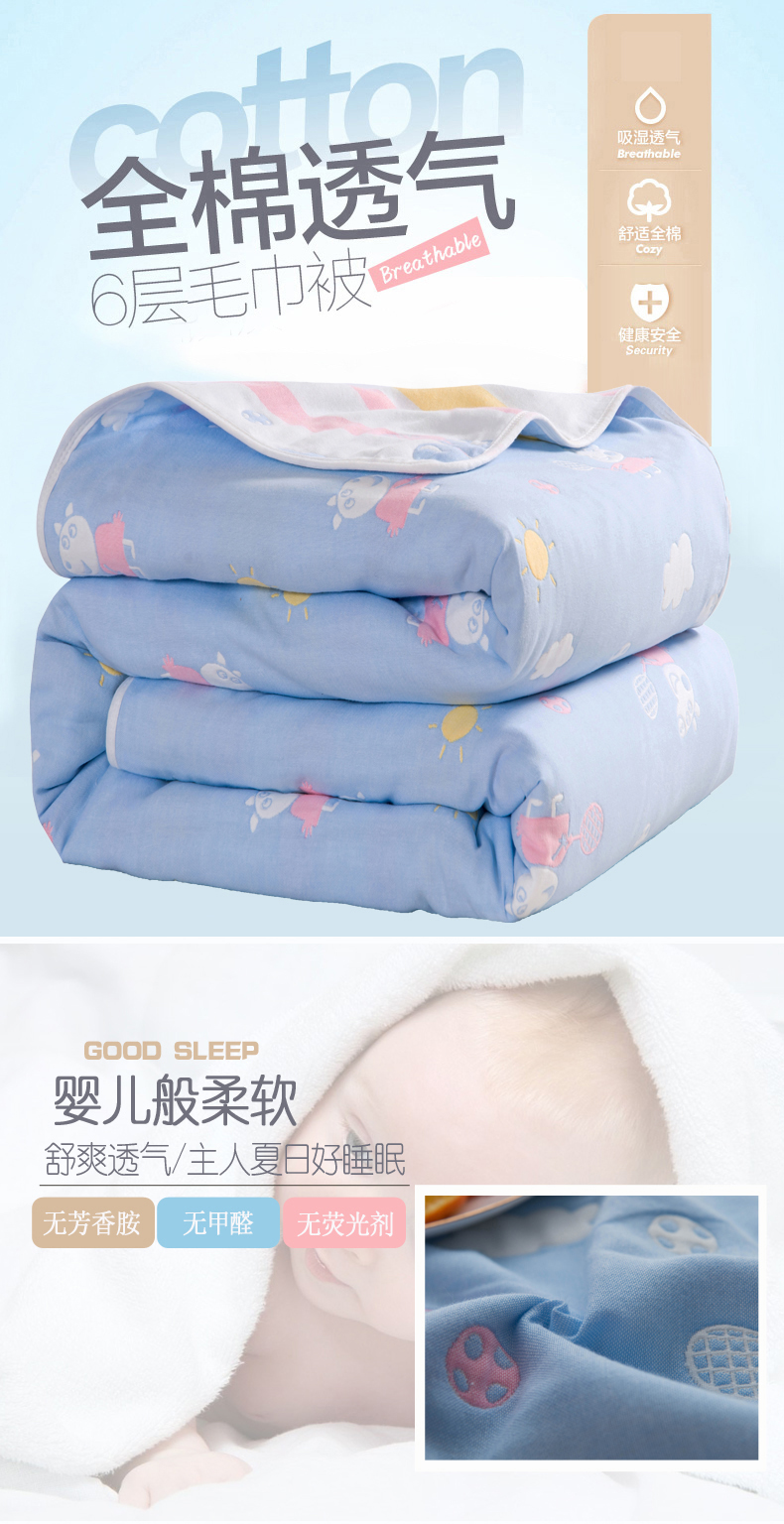 商品名称:朴尔家纺-毛巾被 2026春夏新款全尺寸经典六层纱布全棉纯棉毛巾被系列夏被夏凉被空调被 小猪琪琪-兰