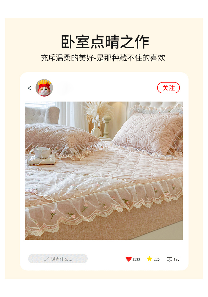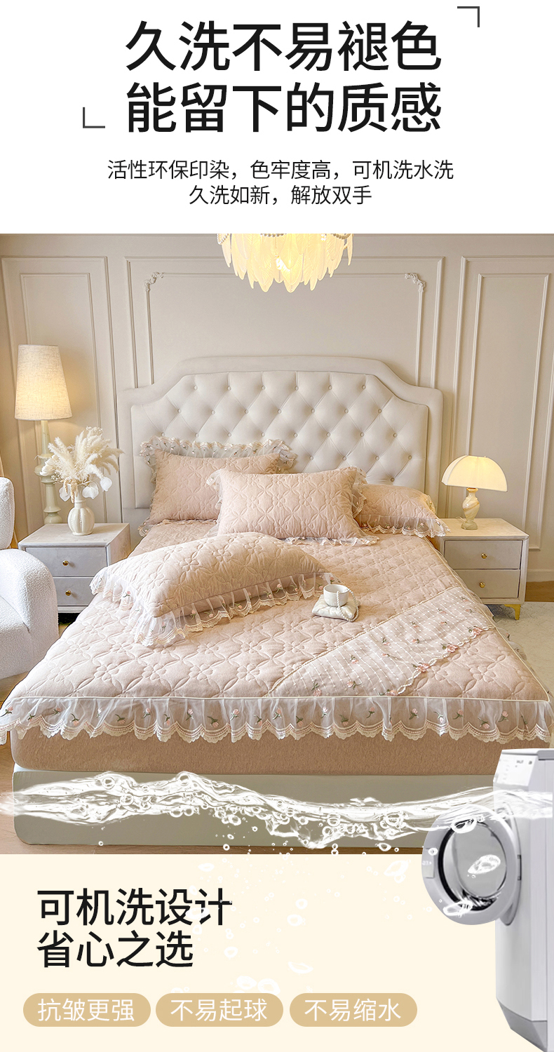 当前位置: 91家纺网 > 商品网购 > 床上用品 > 床笠 > 网红馆(ck家纺) 2026新款色织蕾丝边床裙款床笠 奶茶色
