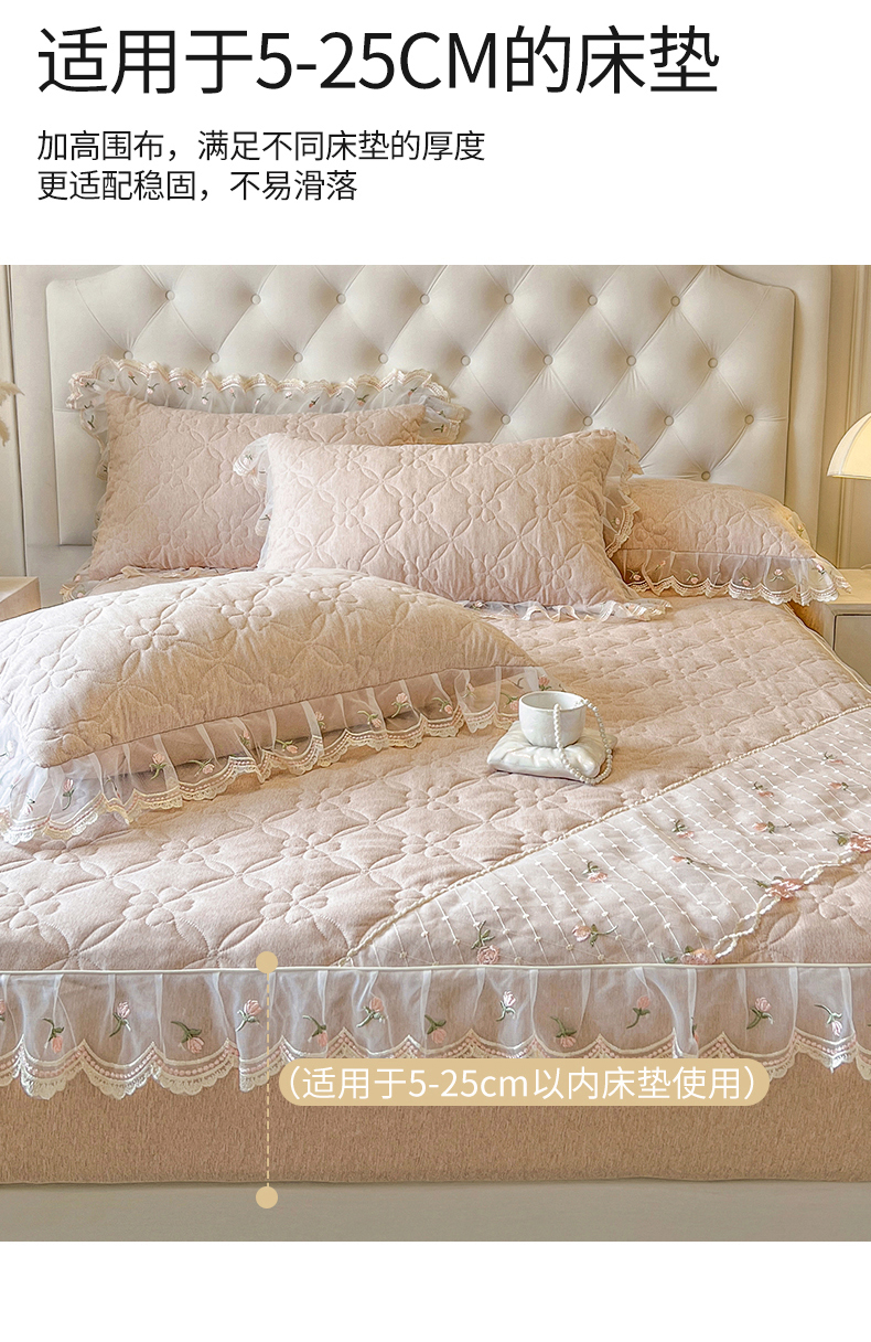 网红馆(ck家纺) 2026新款色织蕾丝边床裙款床笠 奶茶色