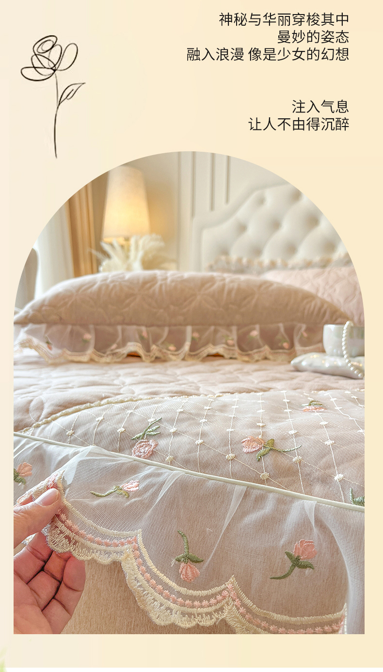(总)网红馆(ck家纺) 2026新款全棉蕾丝花边床裙款床笠晨暮花间系列,绯红,粉色,麦绿,米色,浅紫,雾蓝
