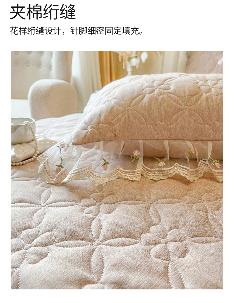 • 91家纺网 家纺一手货源 找家纺 网红馆(ck家纺) 2026新款色织蕾丝边床裙款床笠 奶茶色