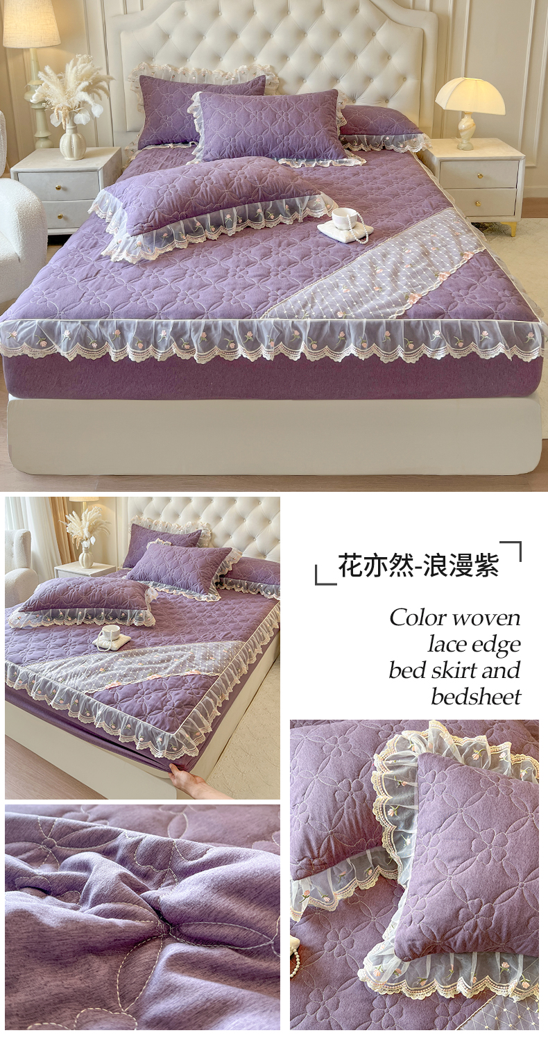 • 91家纺网 家纺一手货源 找家纺 (总)网红馆(ck家纺) 2026新款色织蕾丝边床裙款床笠,宝石蓝,黛绿色,浪漫紫,奶茶色,石青,香妃粉,烟熏灰