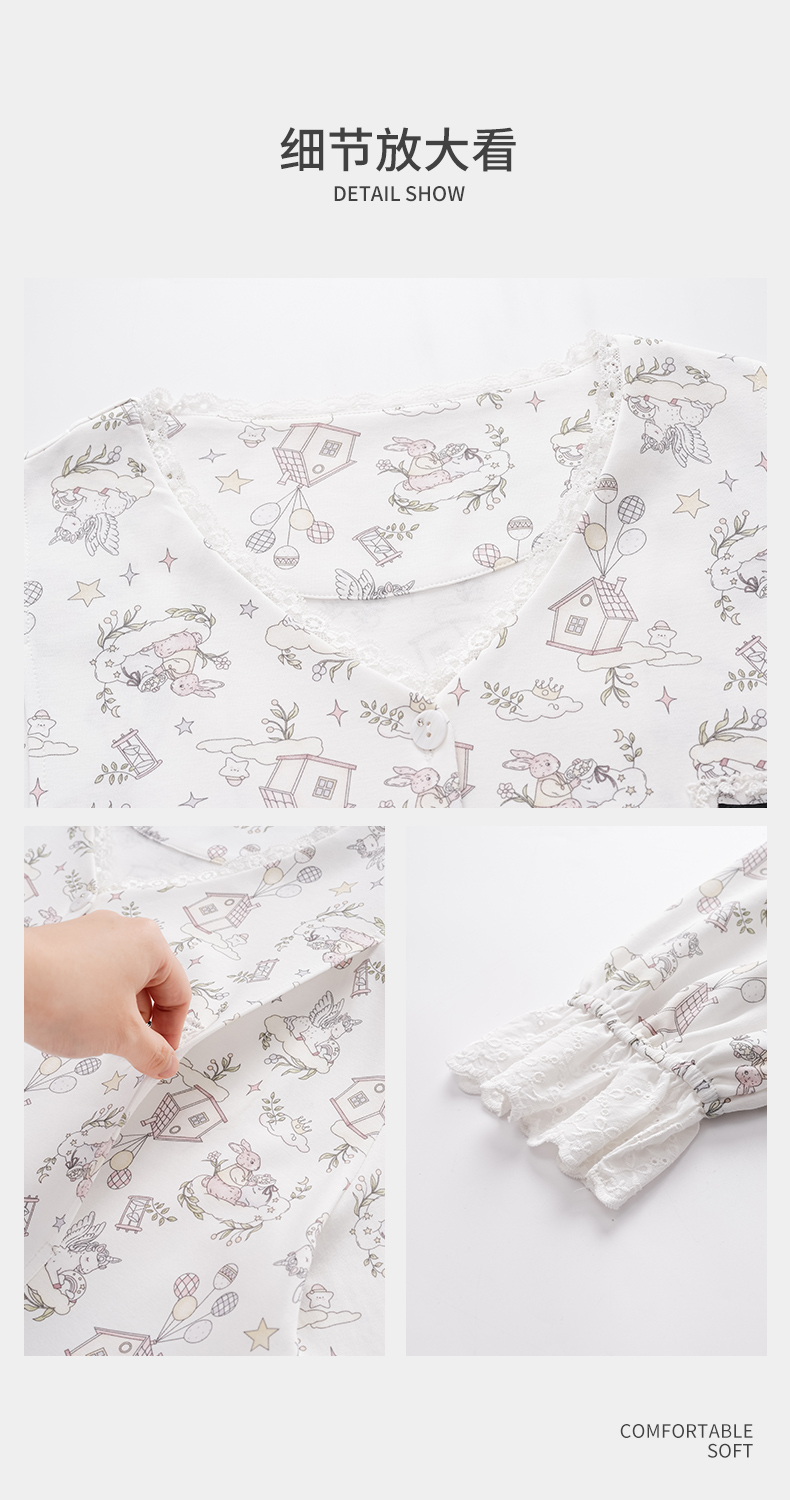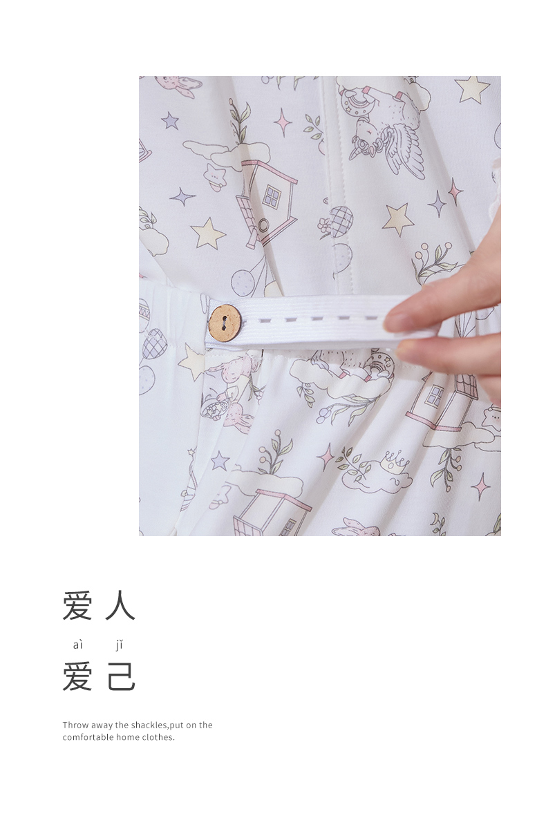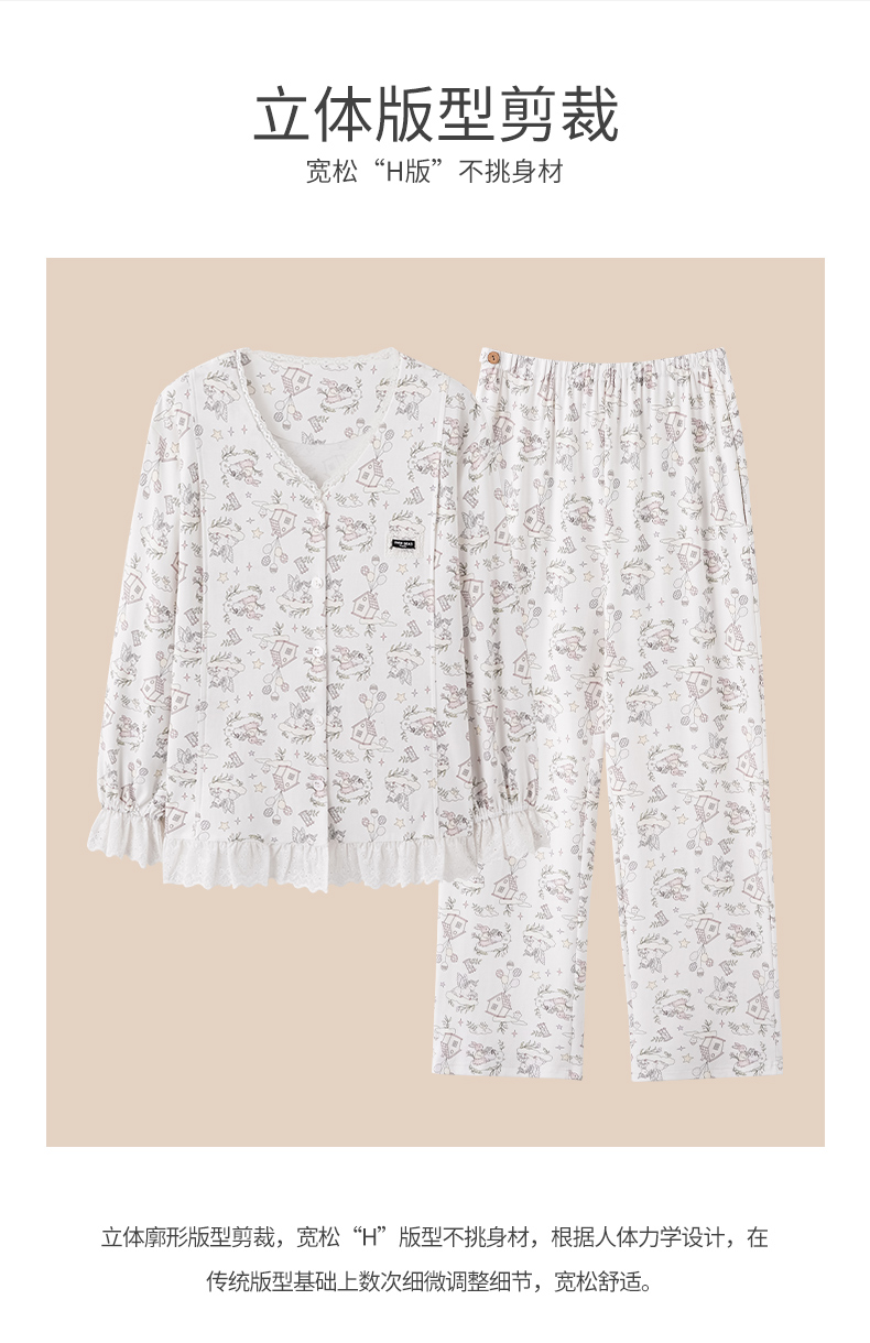 商品名称:洛兰沙家居馆 2026春秋季新款小清新针织全棉纯棉100%翻领开衫双长孕妇月子服睡衣女 翻领套装4