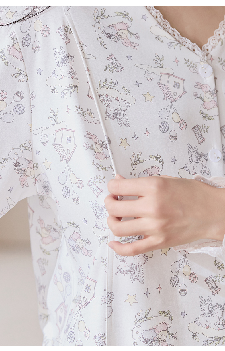 洛兰沙家居馆 2026春秋季新款小清新针织全棉纯棉100%翻领开衫双长孕妇月子服睡衣女 翻领套装4