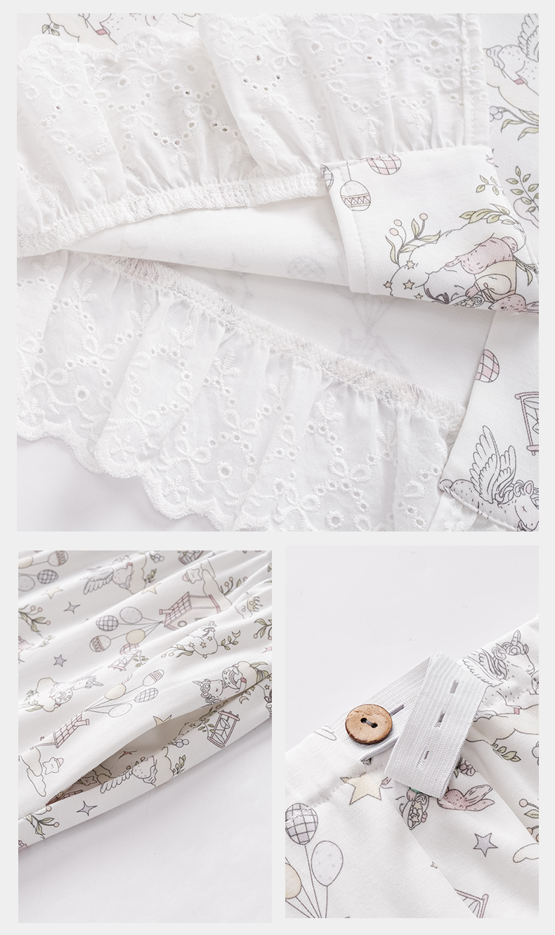 (总)洛兰沙家居馆 韩版甜美素色木耳边纯棉睡衣女春秋季长袖宽松少女感家居服套装可外穿,花色1,花色2