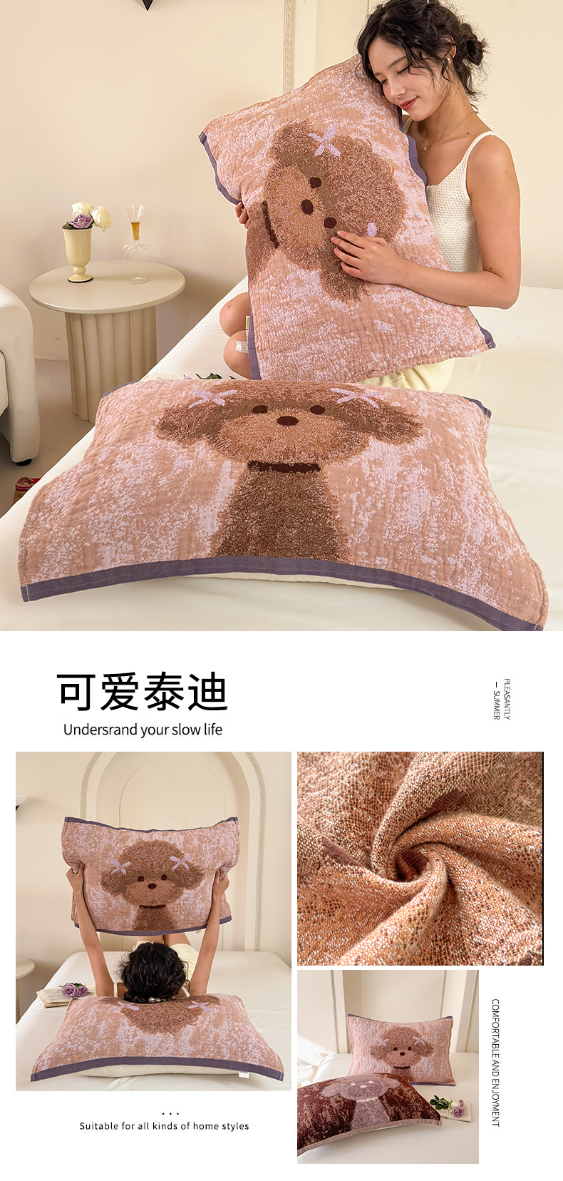 朴尔家纺-毛巾被 2026新款全棉欣软系列定位四层加厚柔软纱布枕巾 可爱泰迪