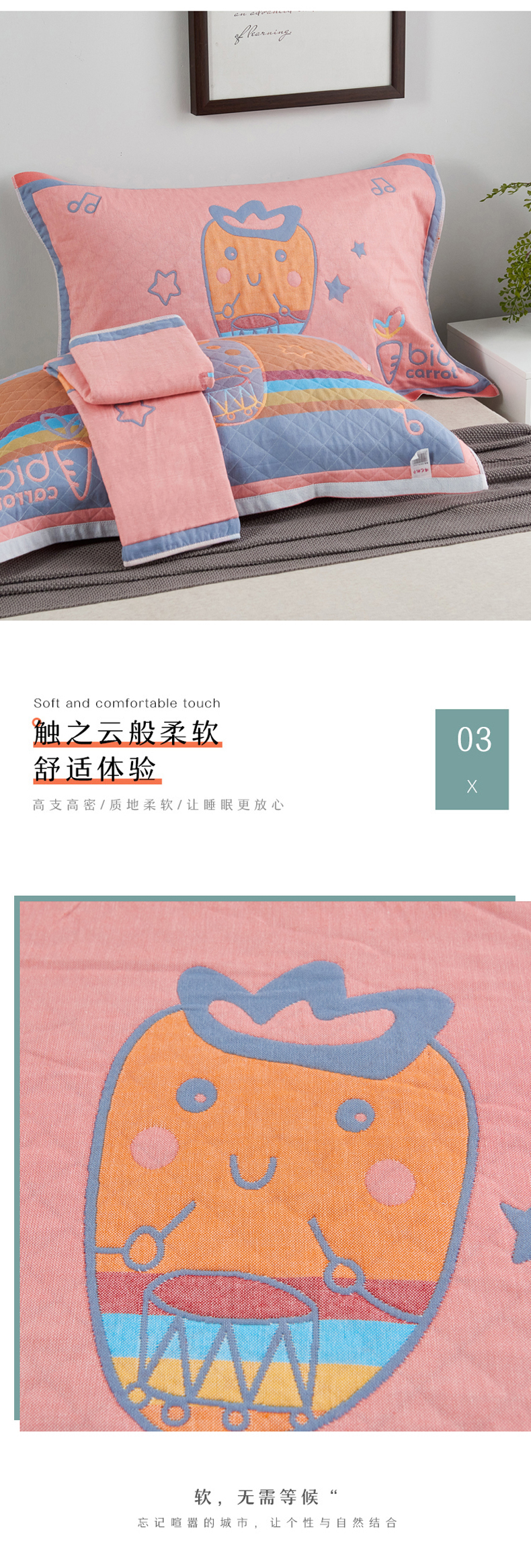 商品名称:朴尔家纺-毛巾被 2026新款彩色糖果系列纯棉三层纱布枕巾 水蜜桃粉