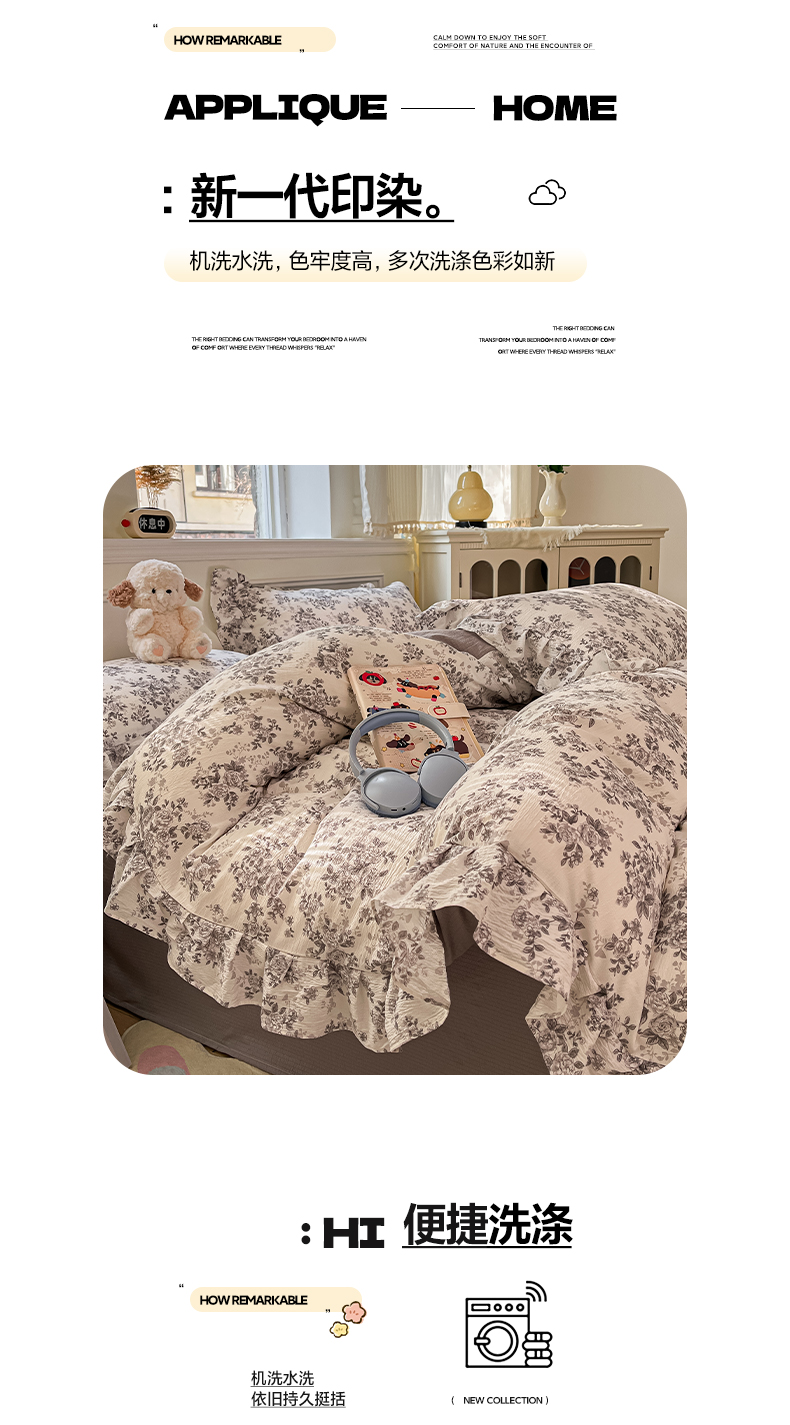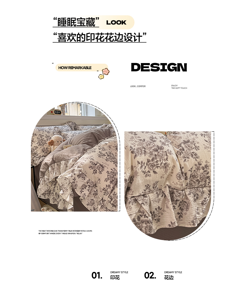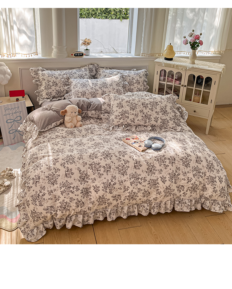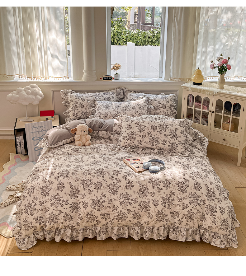 当前位置: 91家纺网 > 商品网购 > 床品套件 > 四件套 > 其它四件套 > 摩妮卡 2026新款泡泡纱韩版印花花边四件套 水墨玫瑰