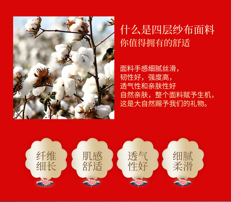 商品名称:朴尔家纺-毛巾被 2026新款全棉40股结婚大红多层纱布透气情侣婚庆枕巾 永结同心