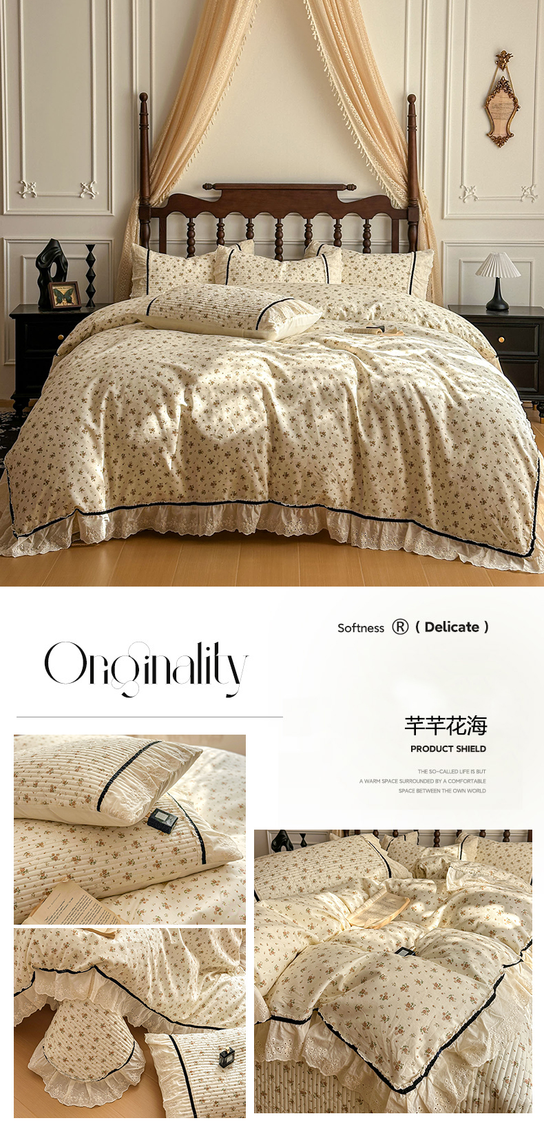 (总)美梦家纺 2026新款高克重全棉花边云感棉床盖四件套,希雅莉·米,雅格·粉,樱桃蜜·咖,尤丽叶·咖,紫藤碎花·咖,莓莓素语·粉,暖小象·兰,浅叶·米,希雅莉·灰