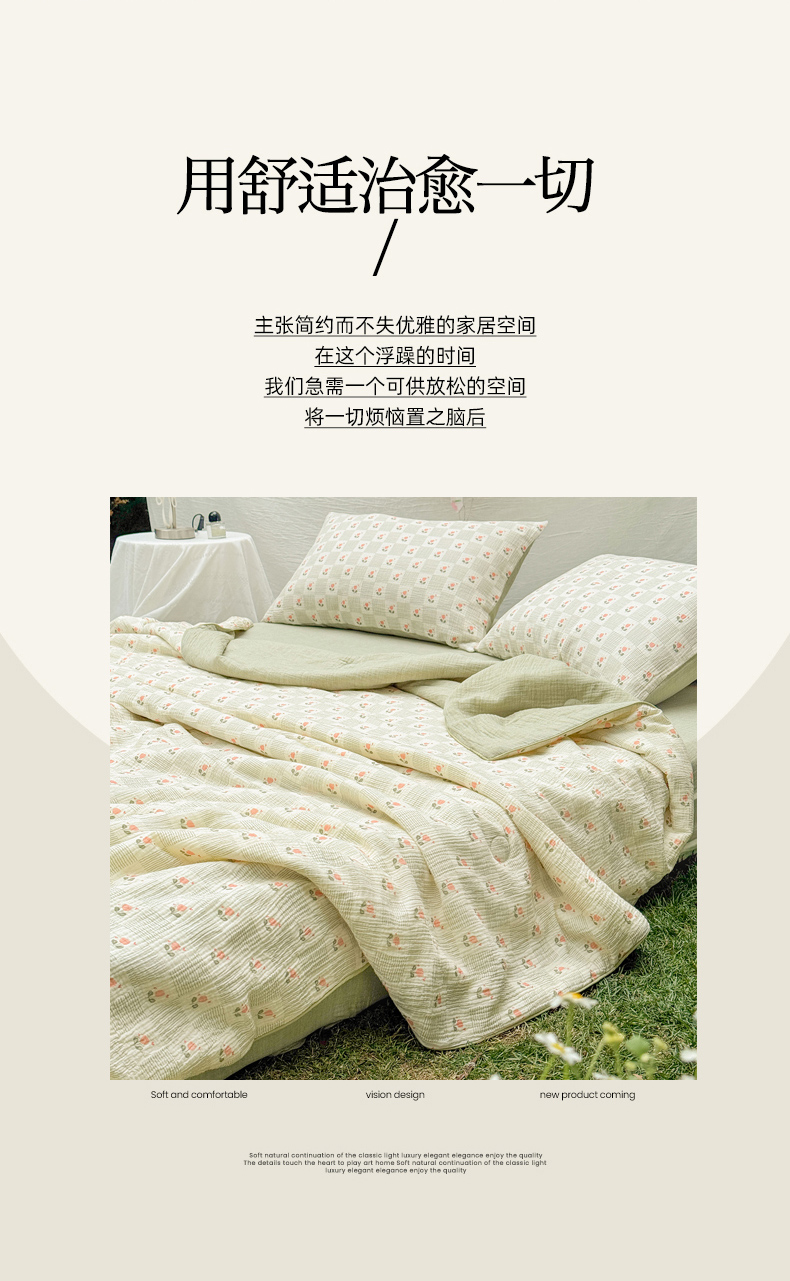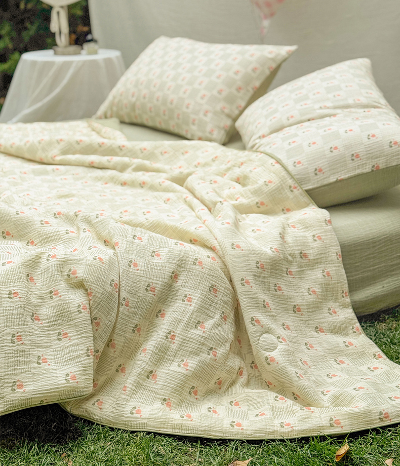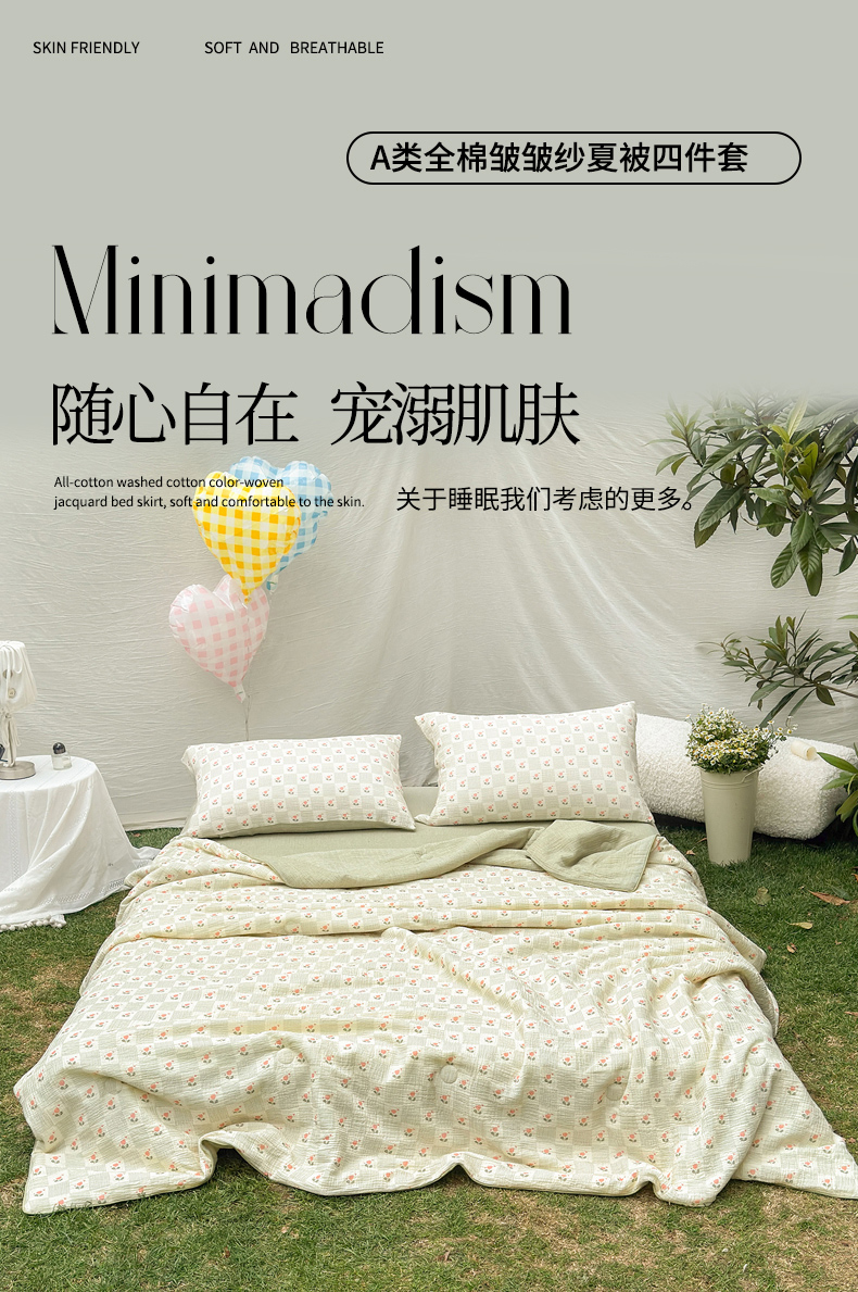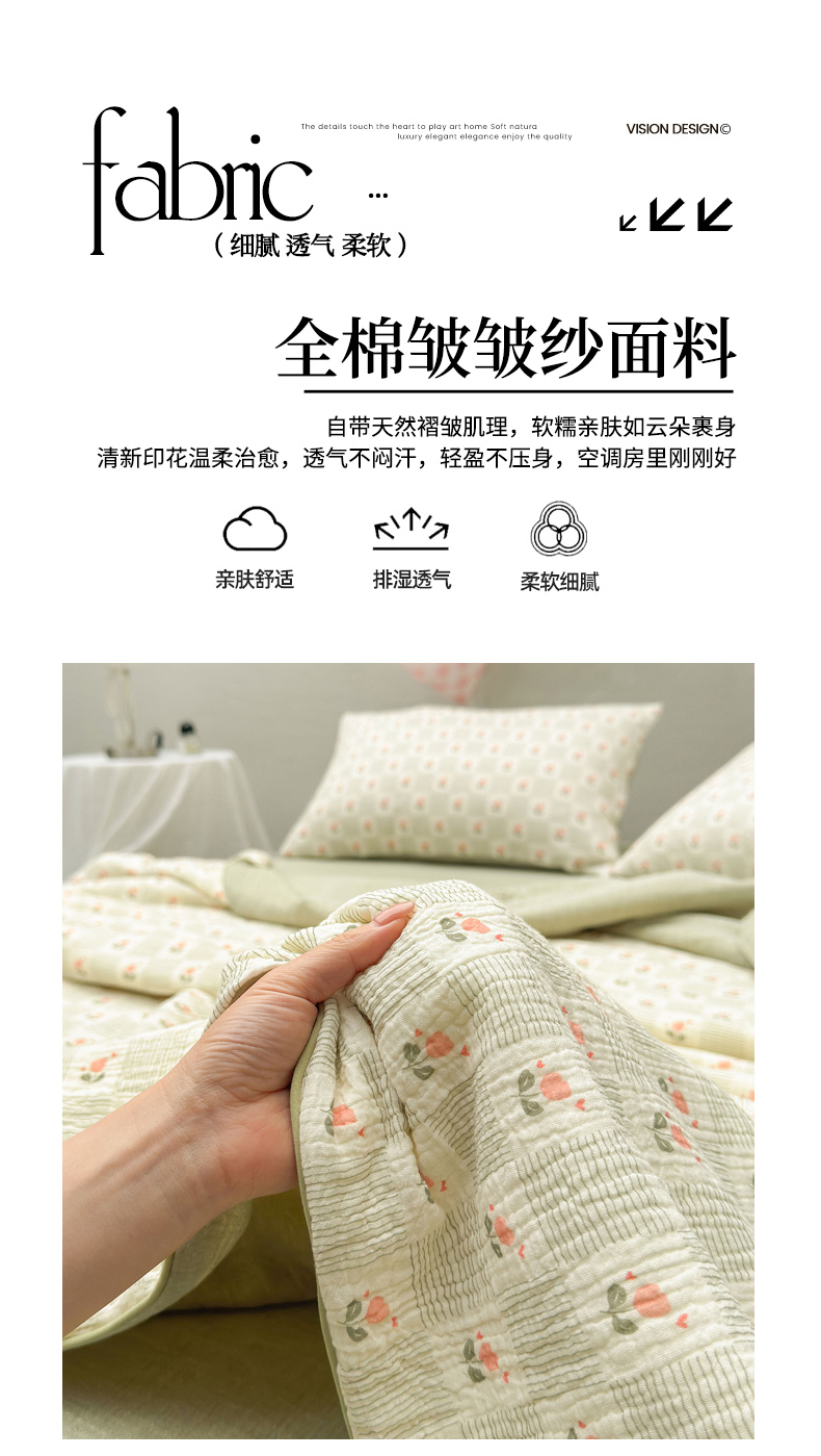 • 91家纺网 家纺一手货源 找家纺 木楌家居 2026年新款全棉皱皱纱夏被夏凉被空调被夏被四件套 芮瑶