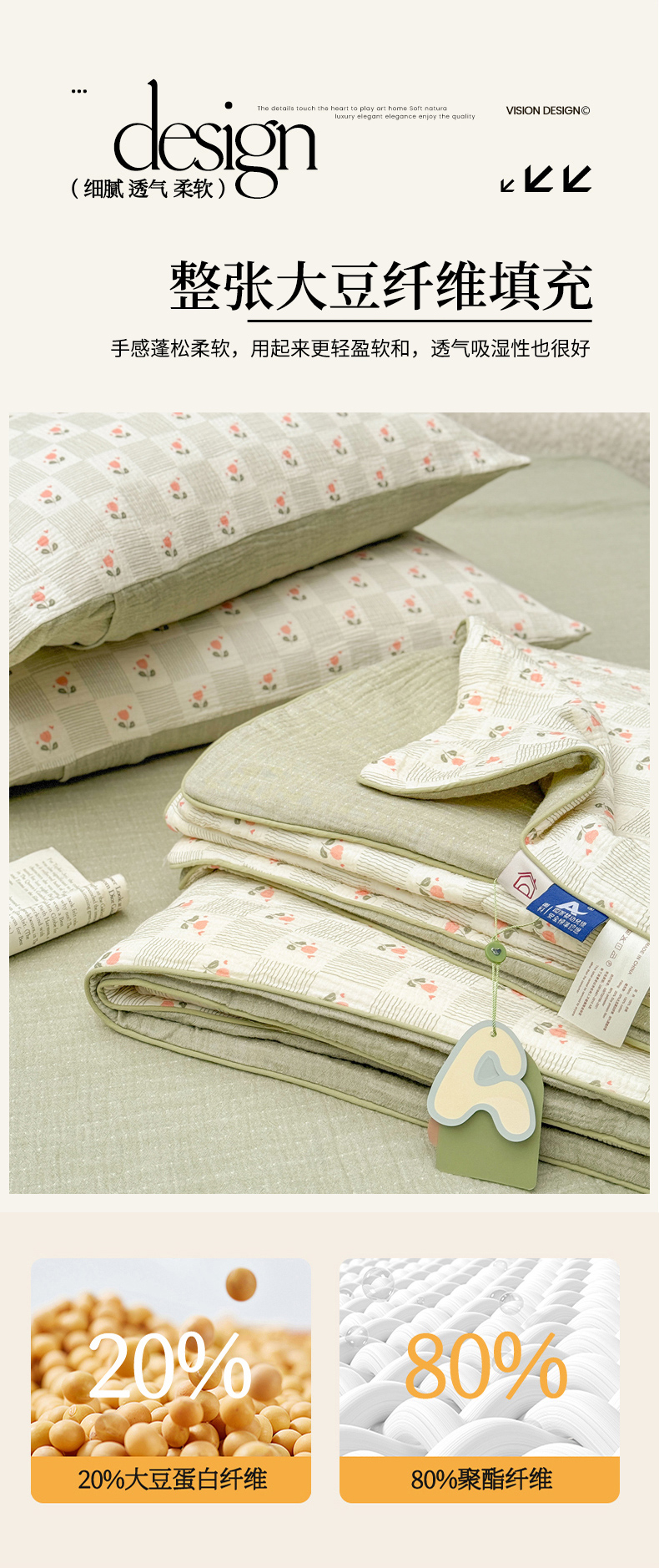 • 填充纤维种类: 大豆蛋白改性聚酯纤维
