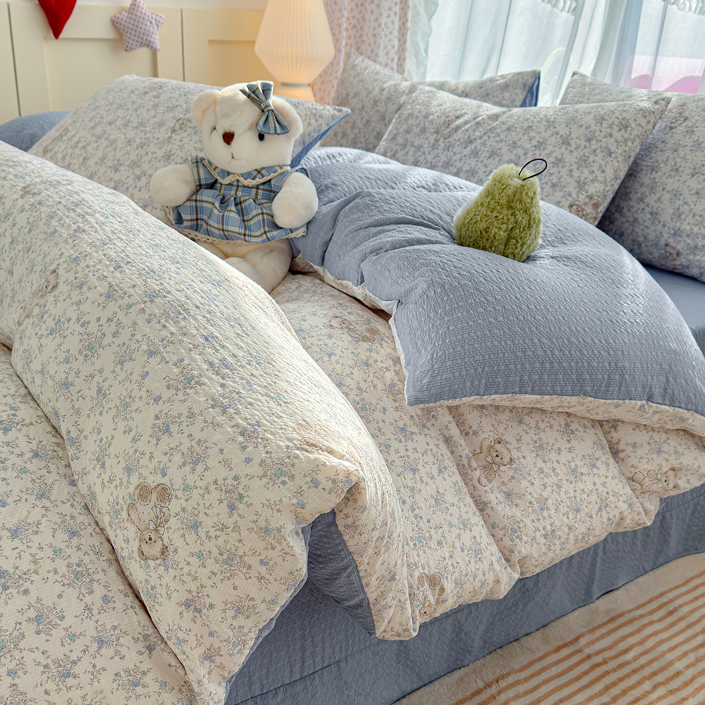 (总)竹合家纺 2026春夏新品高克重A类泡芙纱泡泡皱皱纱四件套,温莎粉,晚安宝贝,条纹腊肠狗,禾里,熊先生,西雅图,幽兰花谷,侏罗纪,花中小熊,复古结美,约定一粉,梅果小兔,星星仔,爱心点点,浅唱花语,爱心小熊,初见一蓝,马到成功,紫色花园,紫萱花开,豹纹KT猫,波西米亚蓝,赫本印象