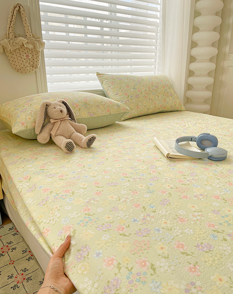 立森 2026春夏新款云感皱皱纱泡芙纱床笠单枕套系列-床拍图 碎花萌宠,碎花萌宠
