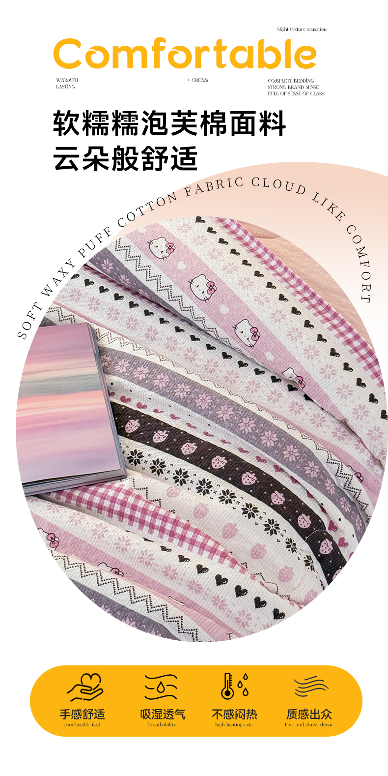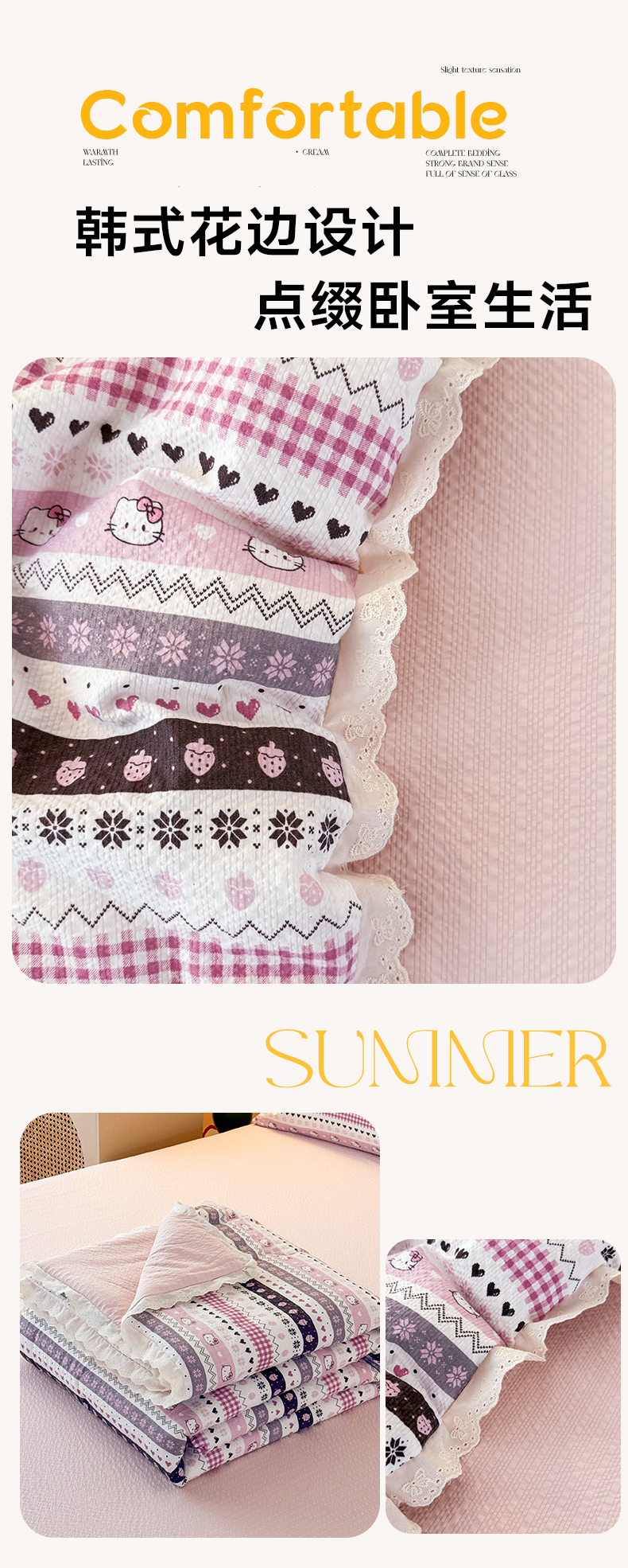商品名称:艺菲阁家纺 2026新款A类泡芙棉夏凉被被子被芯 猫咪集-粉