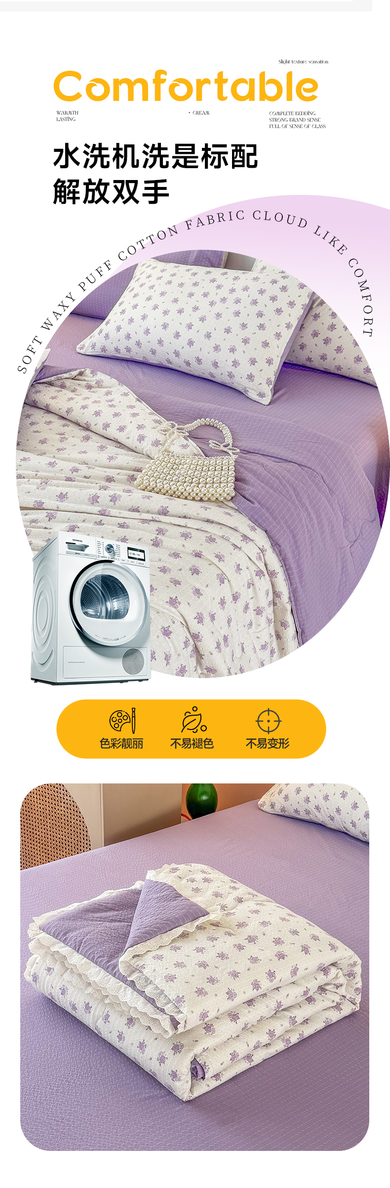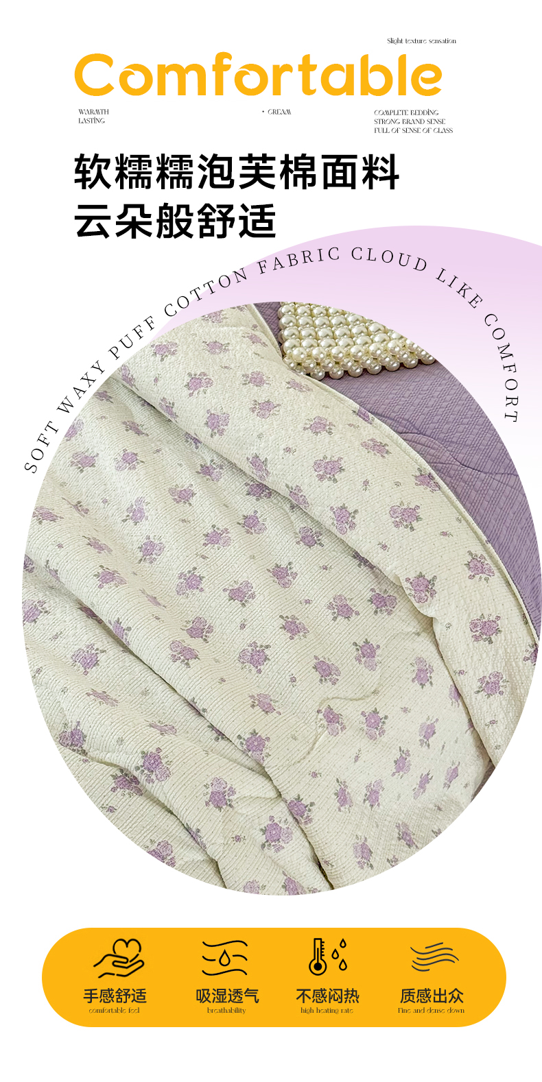 商品名称:艺菲阁家纺 2026新款A类泡芙棉夏凉被被子被芯 芋泥花束