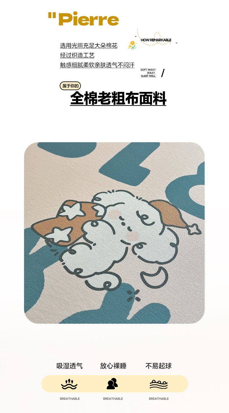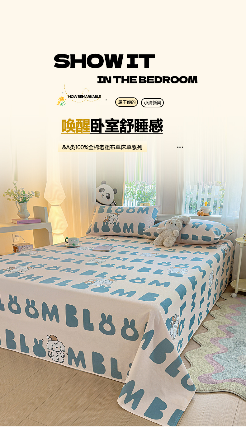 (总)莱登卡奴 2026新款A类100%全棉纯棉老粗布单床单系列,艾伦,冰淇淋,花田初夏蓝,腊肠犬,蓝恐龙,菱格米,莫奈灰,奶酪,泡芙兰,企鹅,旺仔腊肠狗,醒春,丫丫,云初,枝叶