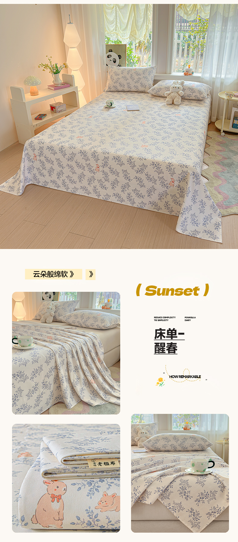 商品名称:莱登卡奴 2026新款A类100%全棉纯棉老粗布单床单系列 泡芙兰