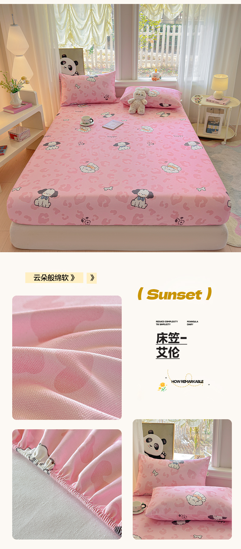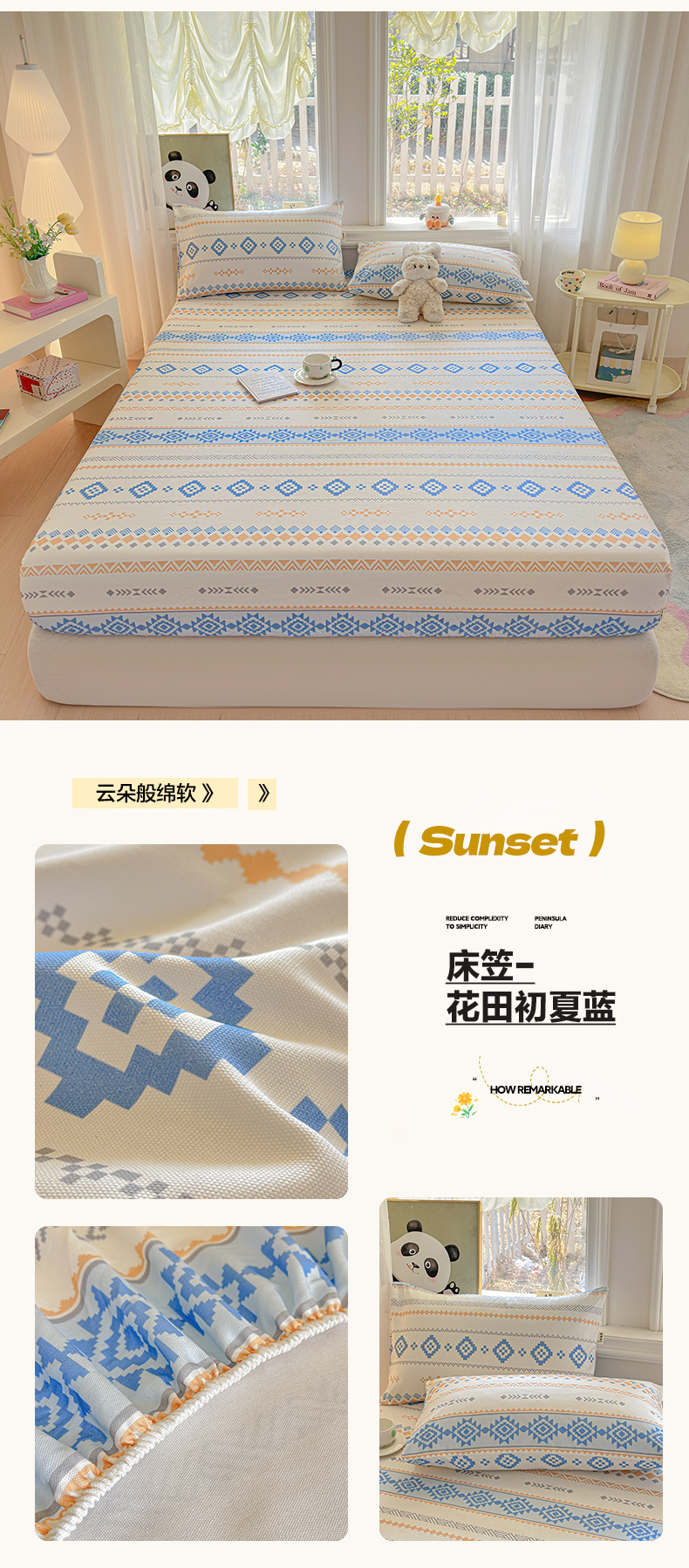 (总)莱登卡奴 2026新款A类100%全棉纯棉老粗布单床笠系列,艾伦,冰淇淋,花田初夏蓝,腊肠犬,蓝恐龙,菱格米,莫奈灰,奶酪,泡芙兰,企鹅,旺仔腊肠狗,醒春,丫丫,云初,枝叶,组合图 仅供参考