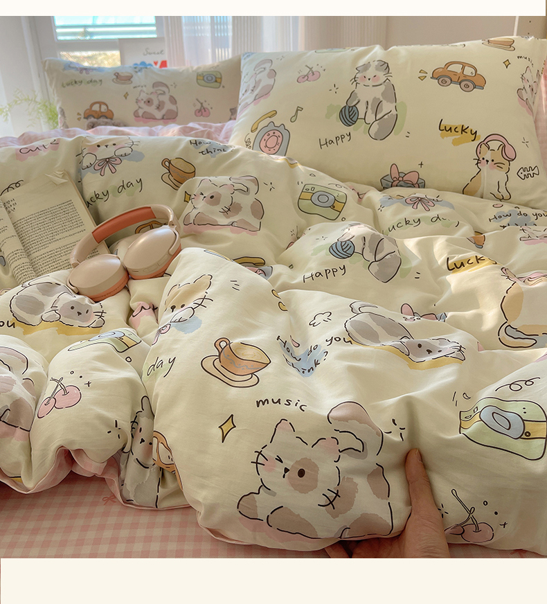 商品名称:六巷胡同 2026新款INS减龄可爱风卡通全棉四件套(第二系列) 猫咪聚会趴