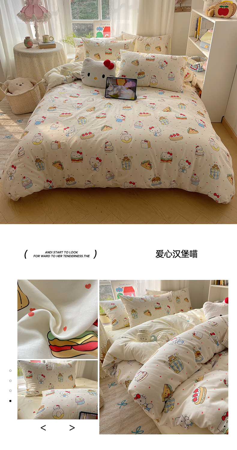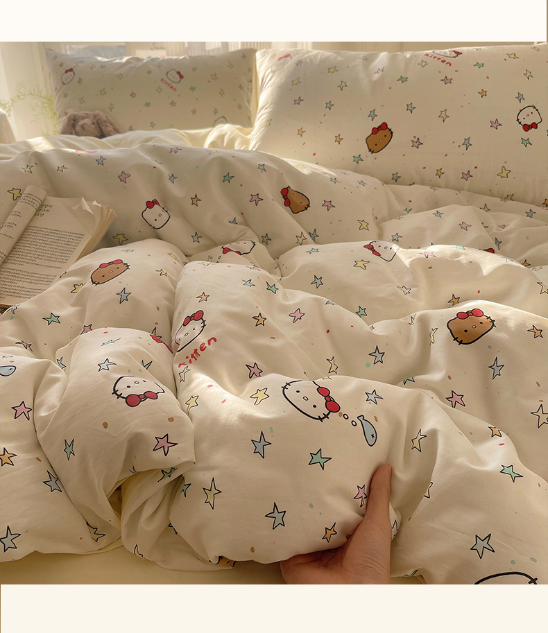 商品名称:六巷胡同 2026新款INS减龄可爱风卡通全棉四件套(第二系列) 星星萝莉猫