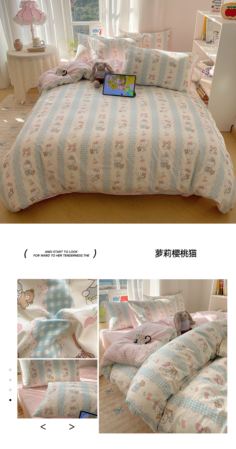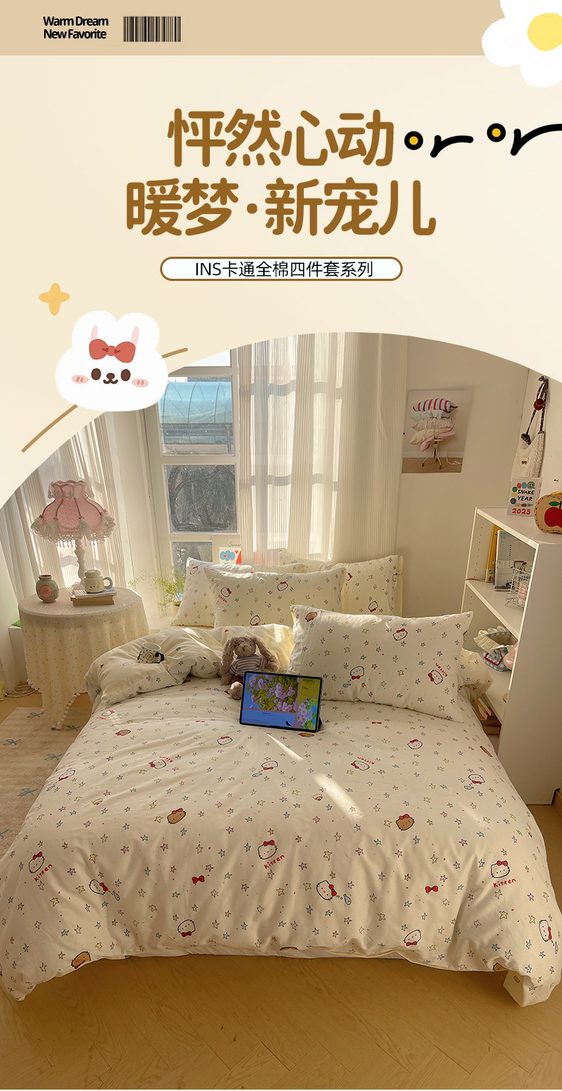 六巷胡同 2026新款INS减龄可爱风卡通全棉四件套(第二系列) 星星萝莉猫