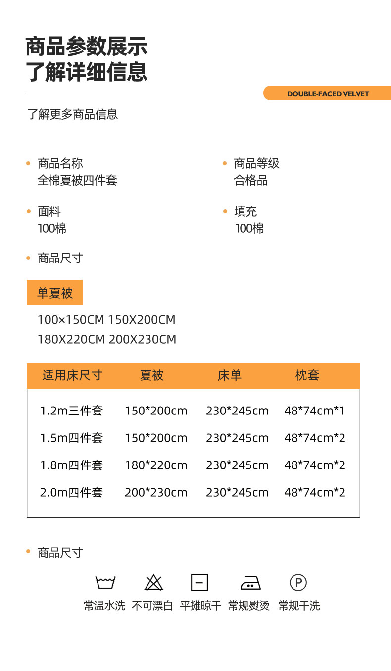 1.5m四件套:夏被150x200cm 床单230*245cm