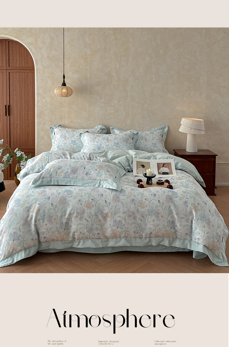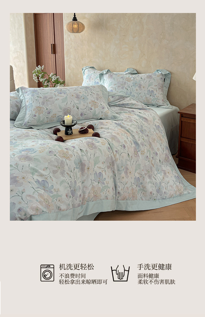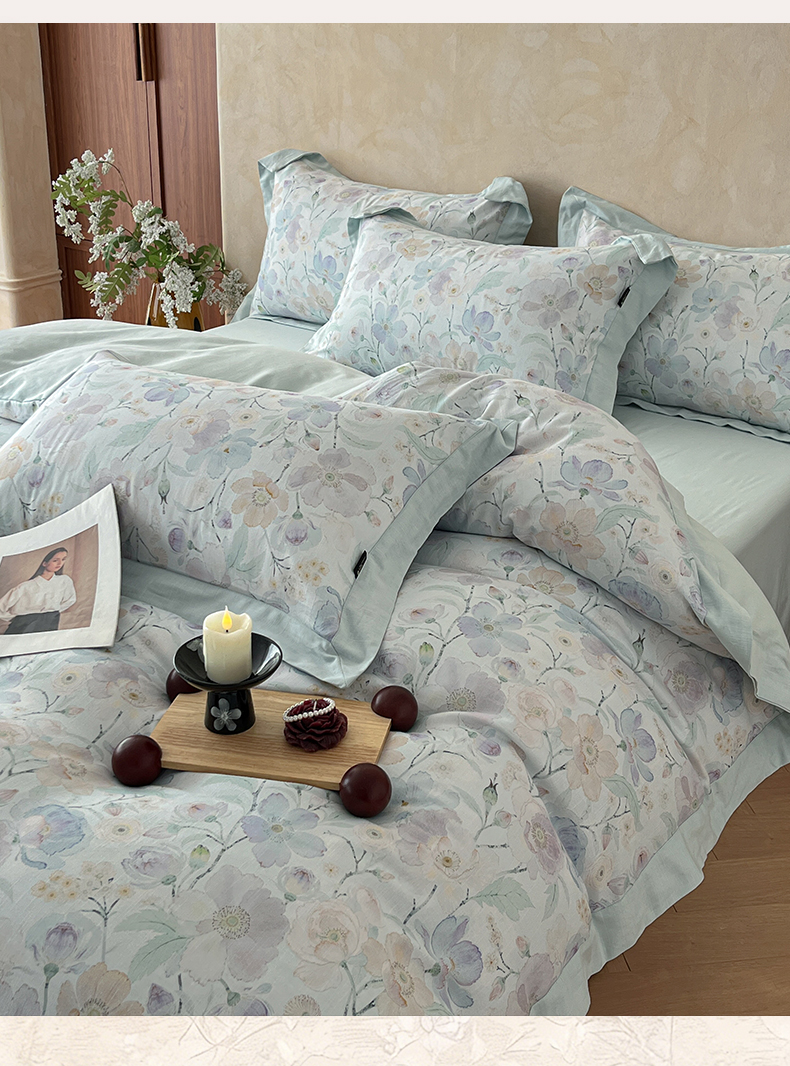 (总)金昱纺 2026新款全棉50S长绒棉数码印花宽边埋绳款四件套(带精美礼盒包装),叶栖-咖,黛秋-粉,花织软梦,摩卡-绿,甜梦花栖,榭风轻眠