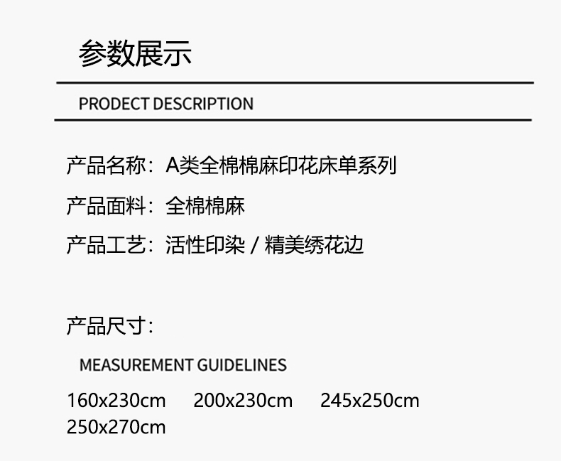 商品名称:优米家纺 2026新款棉麻印花床单单件床单单品 海滩红
