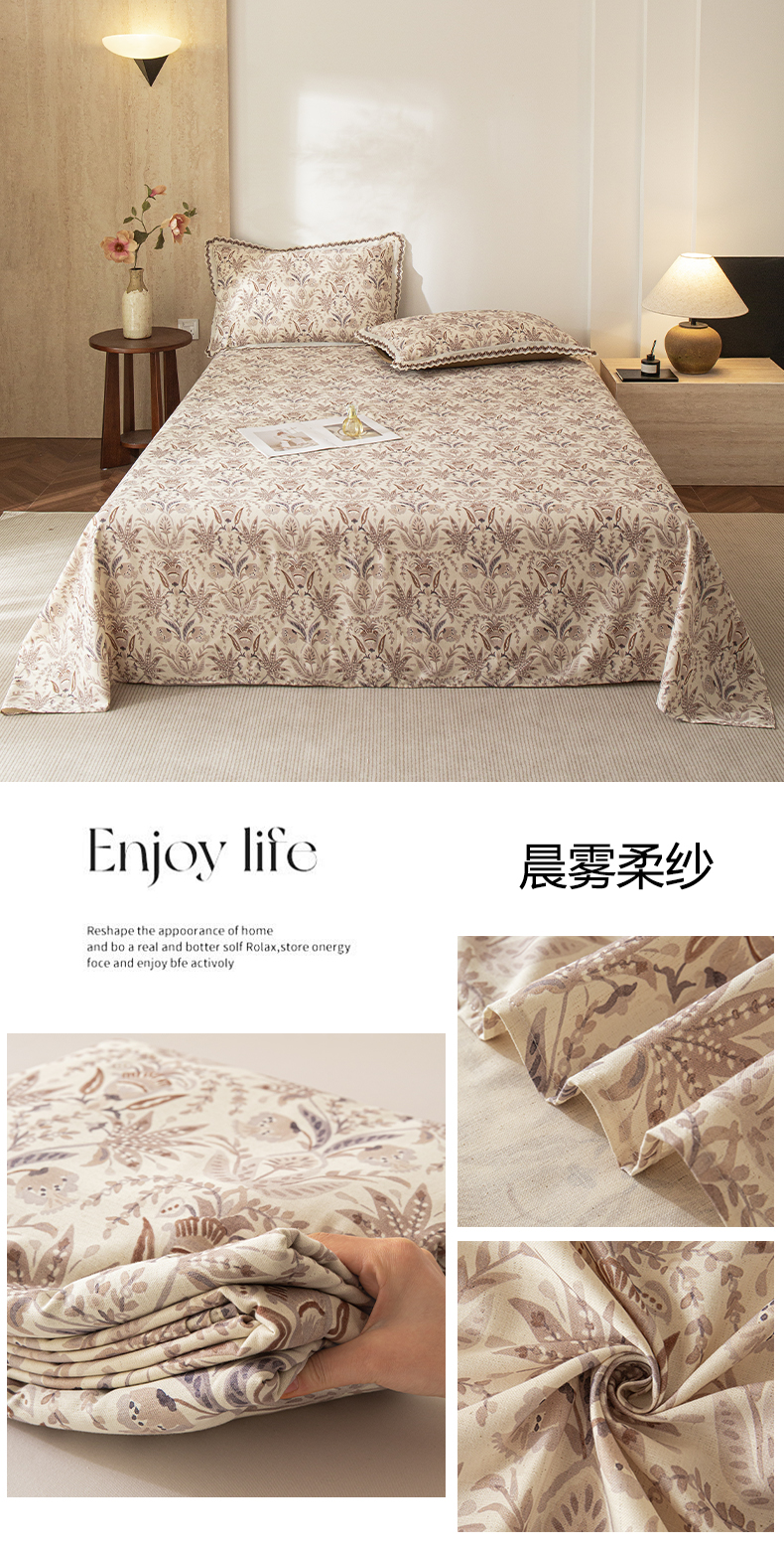 (总)优米家纺 2026新款棉麻印花床单单件床单单品,云思木想,暮色织语,精灵仙子,光年之外,七彩童话,晨雾柔纱,狗狗乐园,夜曲,热带汐语,以梦为马,木马乐园,林语花眠,香韵满园,花熙,月光纱,蔓叶森语,杏仁咖,玉颜粉,冷雾灰,暮云灰,本色,海滩红,西子绿,组合图仅供参考不可下单