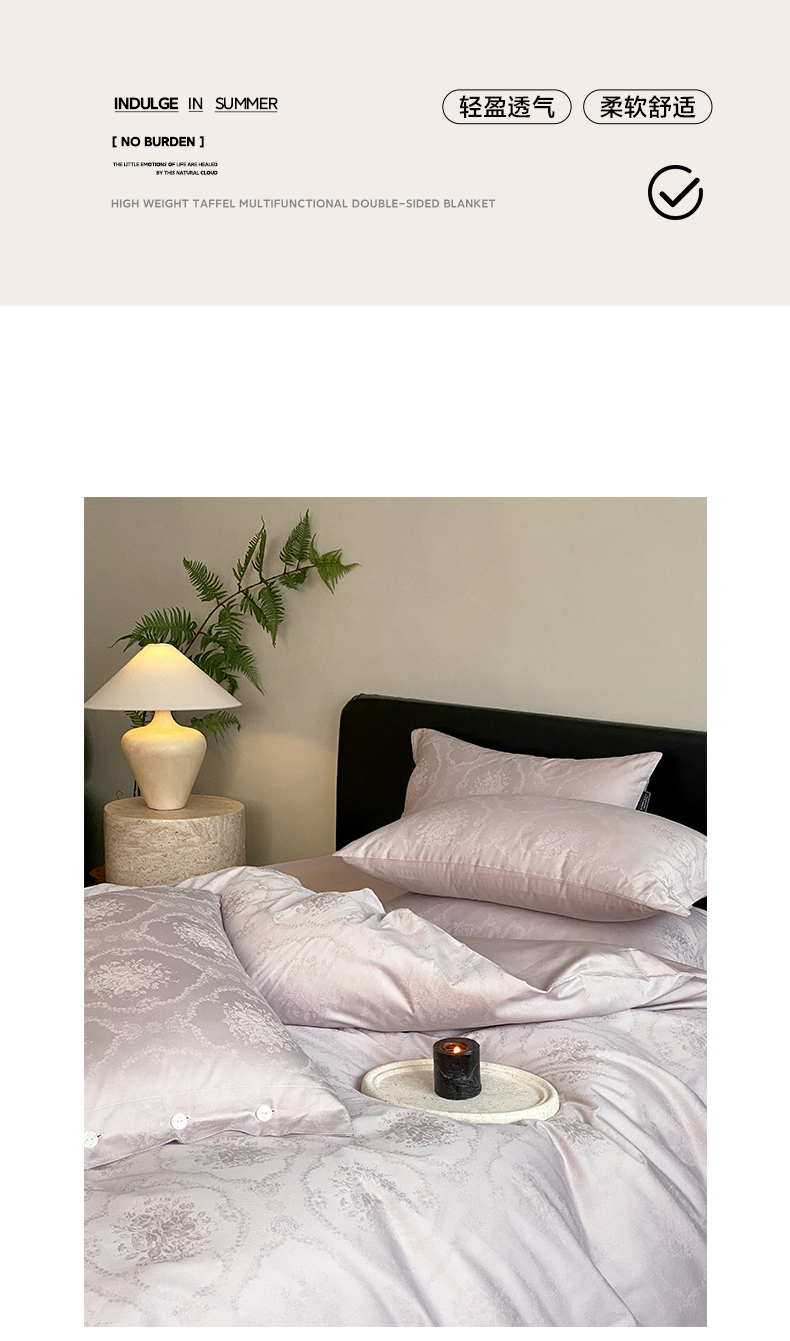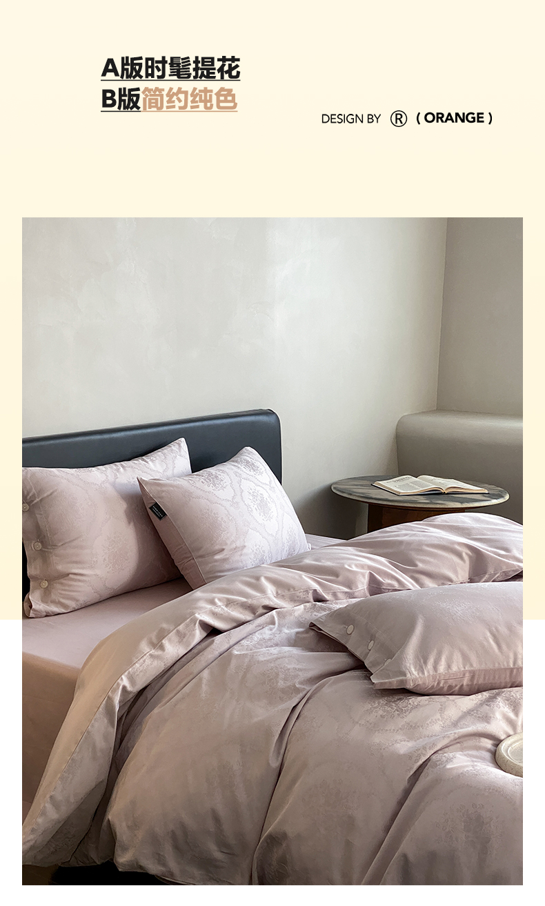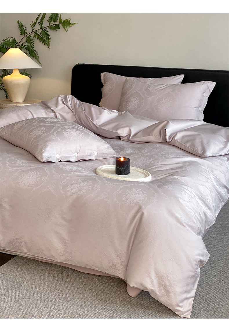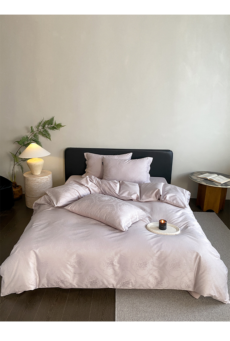 商品名称:三味舒屋 2026新款长绒棉全棉提花四件套-恋春系列-场景二 恋春浅紫