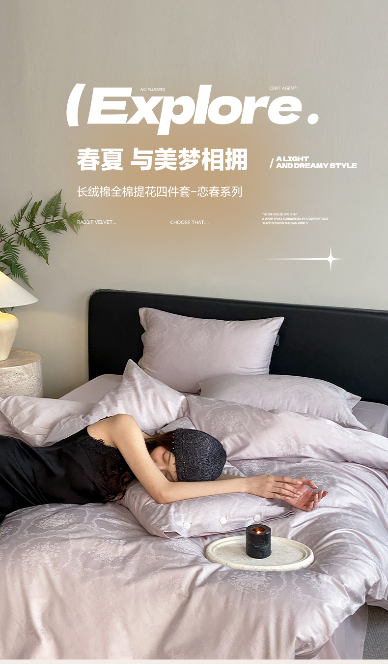 三味舒屋 2026新款长绒棉全棉提花四件套-恋春系列-场景二 恋春浅紫