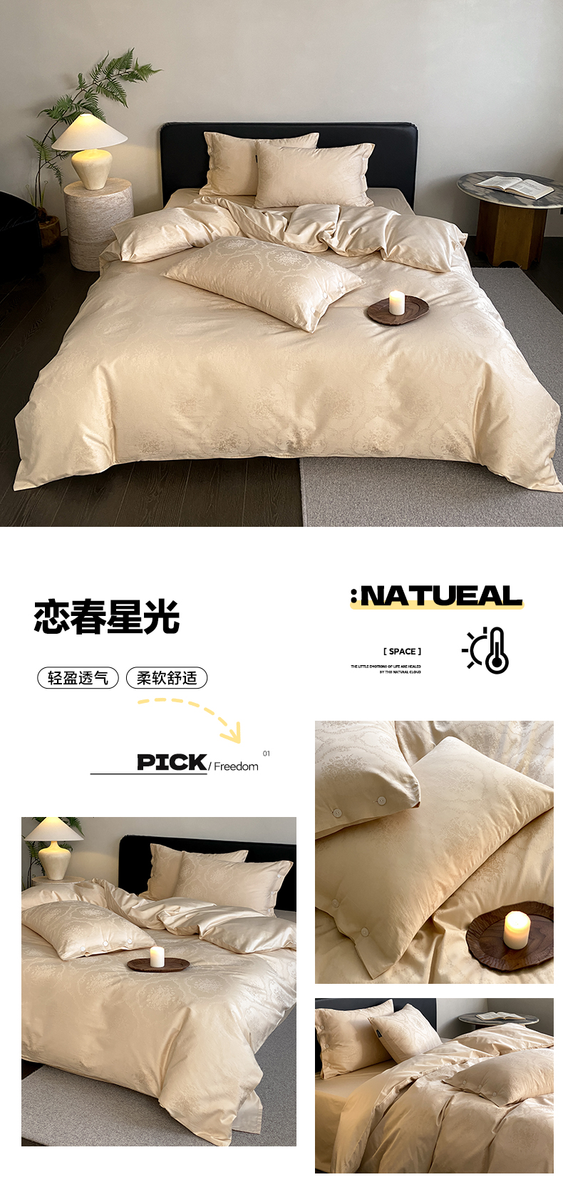 (总)三味舒屋 2026新款长绒棉全棉提花四件套-尼亚系列拍法二,尼亚黑灰,尼亚象牙色,尼亚星光金