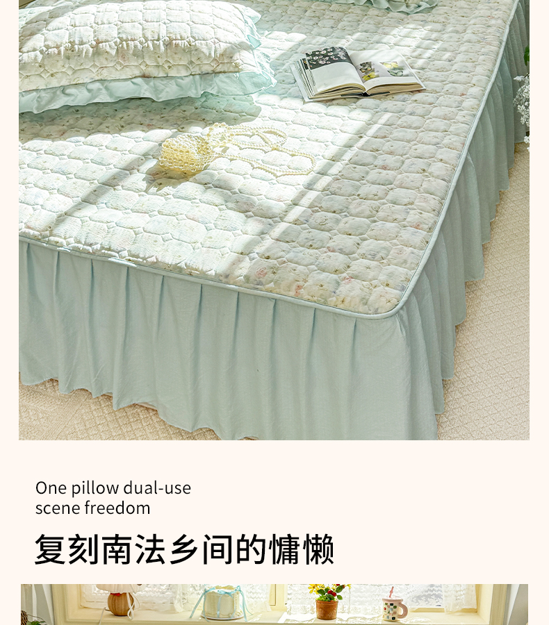 (总)禧缘家纺(原梦想家) 2026新款小清新皱皱纱木棉床裙式床笠印花单枕套,彩虹,蝶梦,花田,沐春,南瓜,泡芙,甜筒,童话,兔兔,雾迟,星星,月光