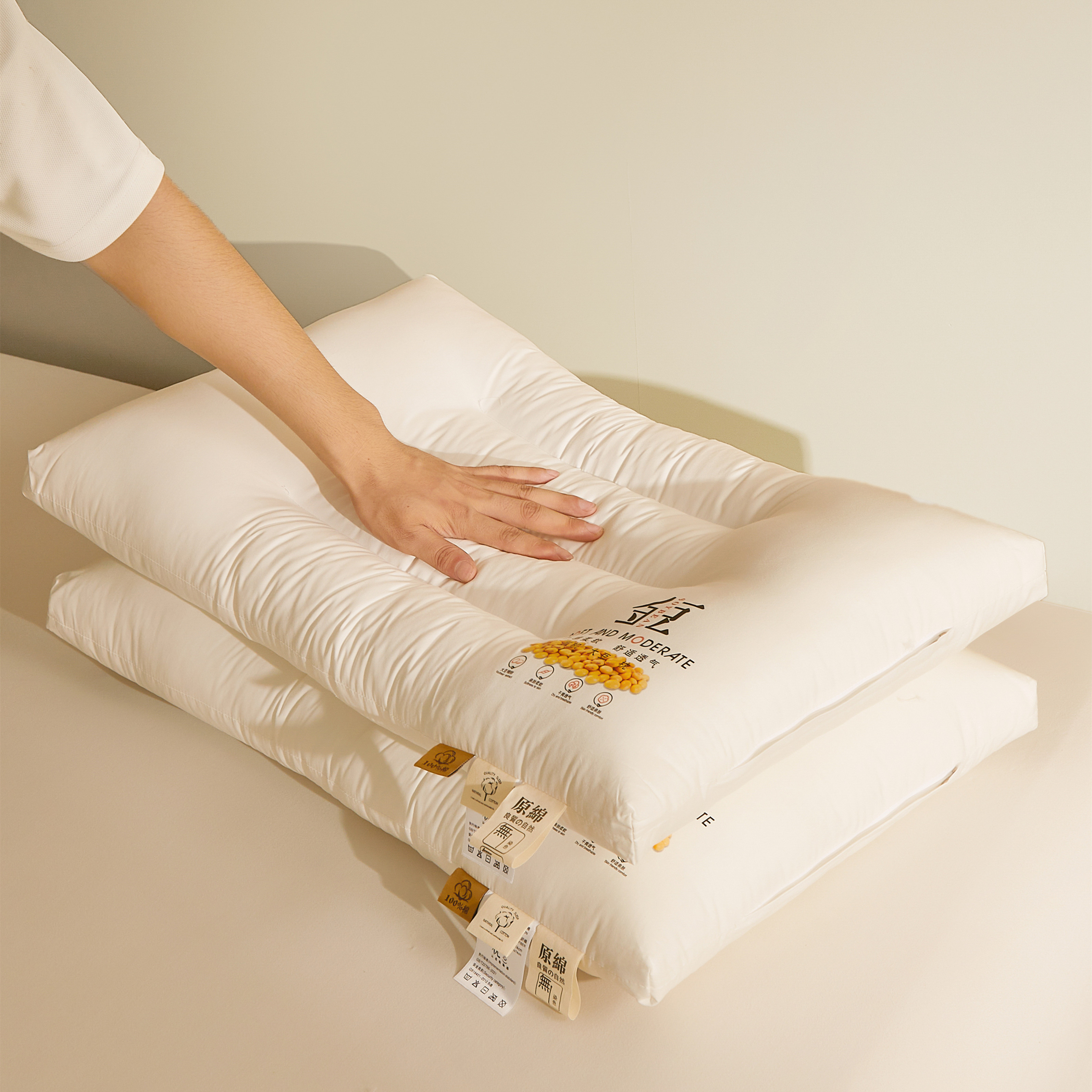 (总)小桃姐家纺 2025新款全棉纯棉金豆枕枕头枕芯高中低三款,金豆-低枕,金豆-中枕,金豆-高枕