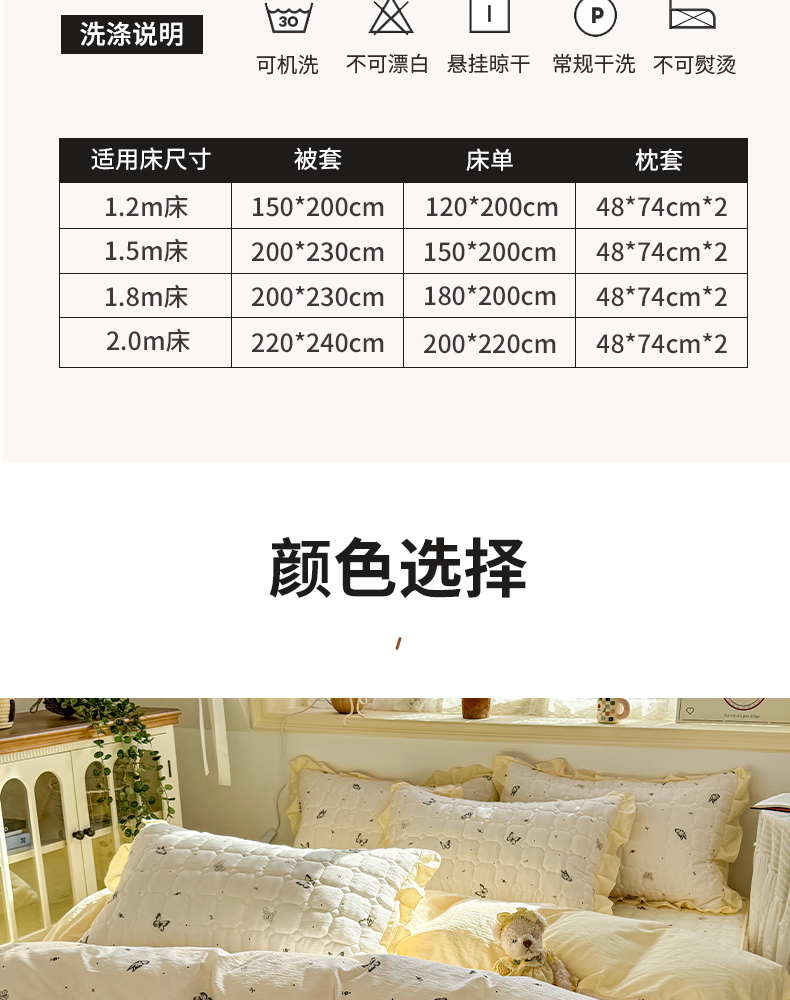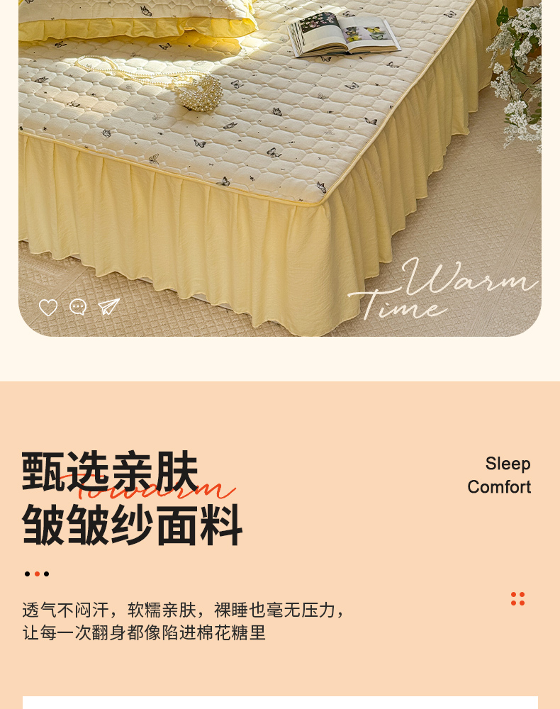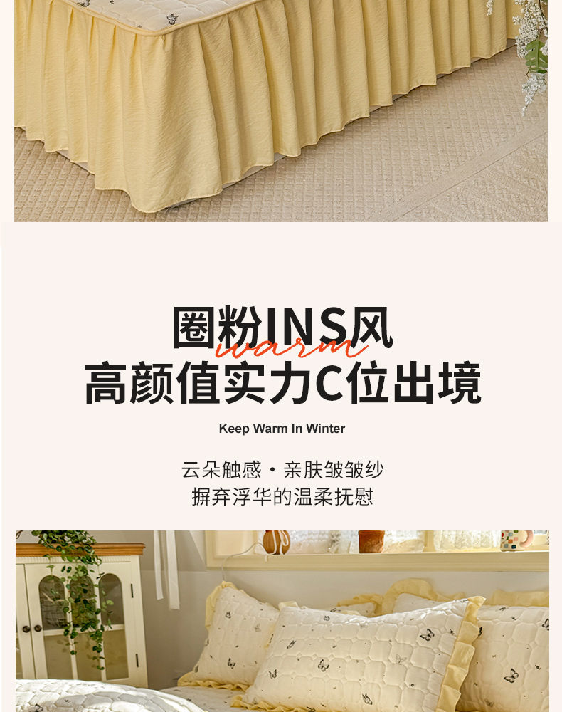 (总)禧缘家纺(原梦想家) 2026新款小清新皱皱纱木棉床裙式床笠印花三件套,彩虹,蝶梦,花田,沐春,南瓜,泡芙,甜筒,童话,兔兔,雾迟,星星,月光
