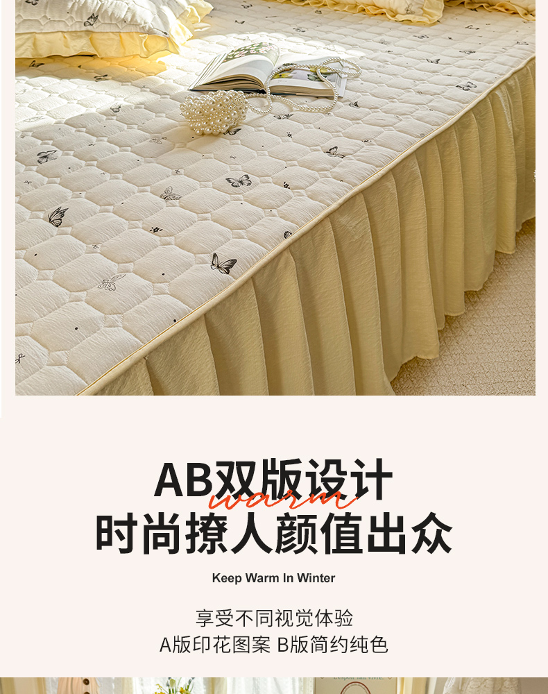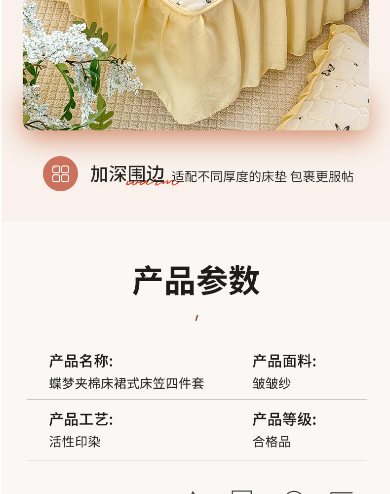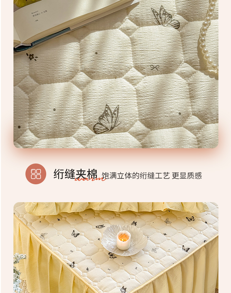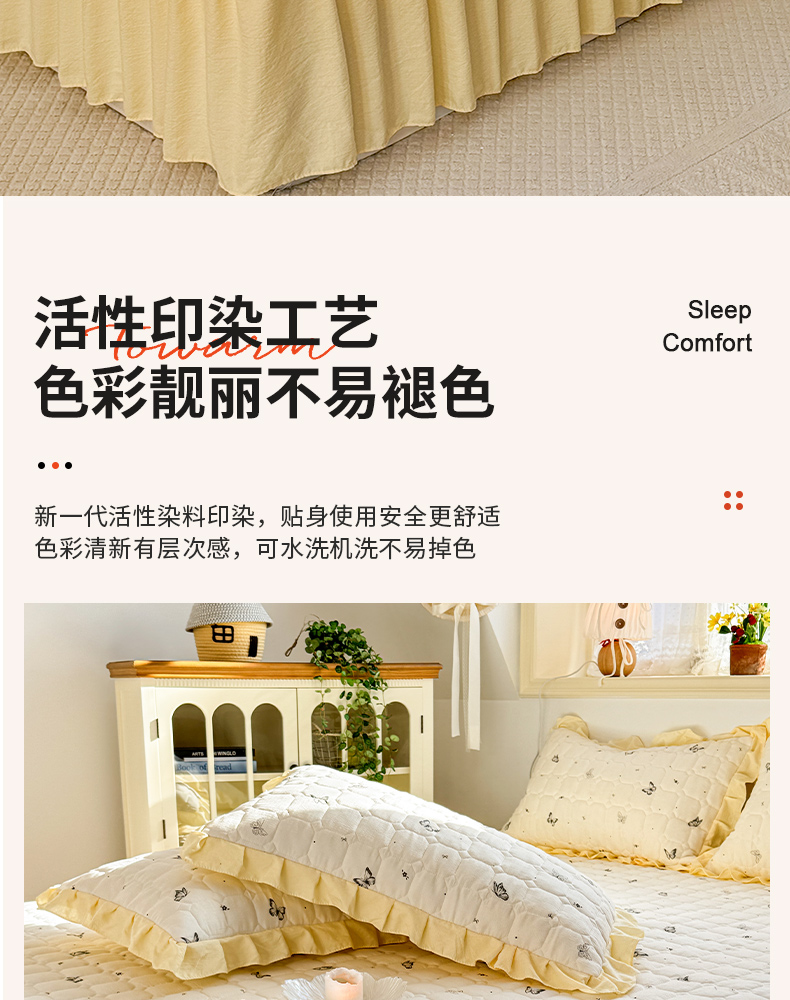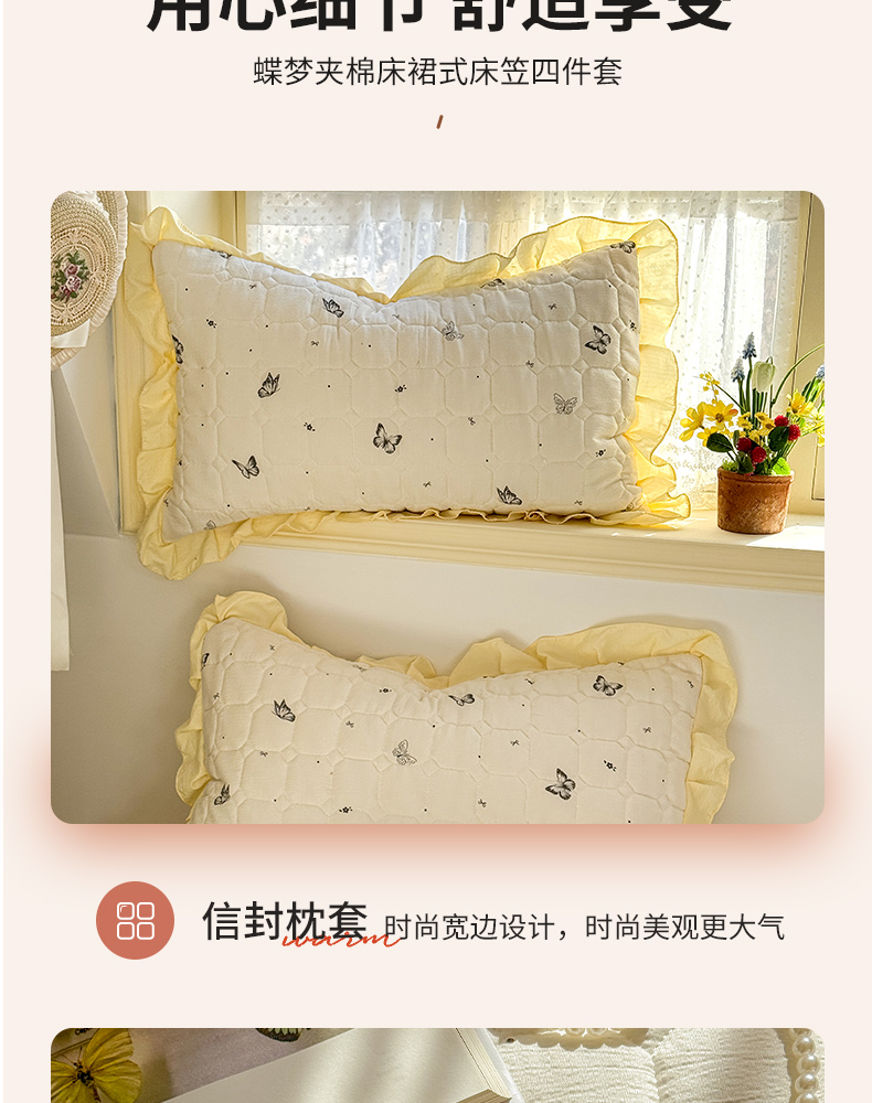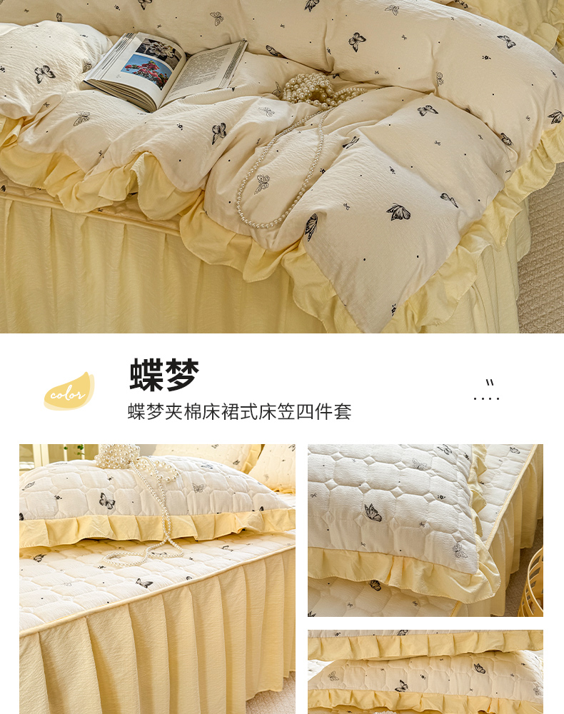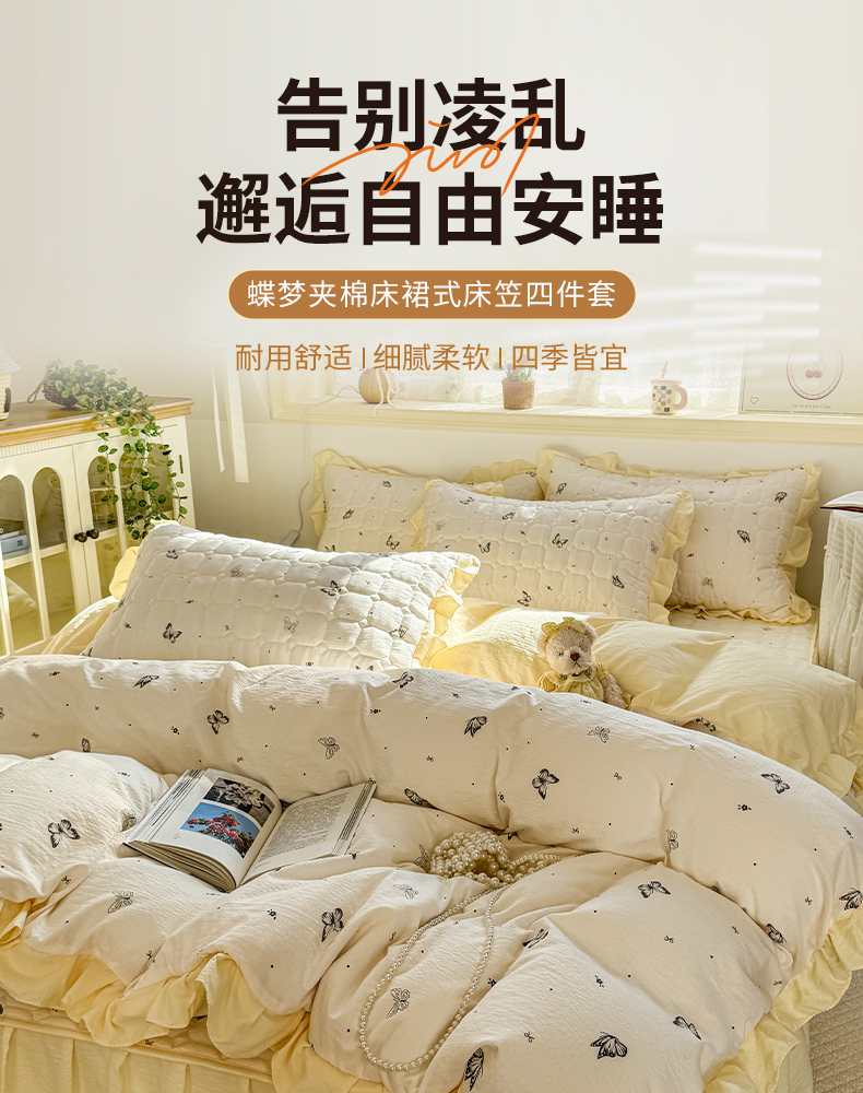 商品名称:禧缘家纺(原梦想家) 2026新款小清新皱皱纱木棉床裙式床笠印花单被套 蝶梦