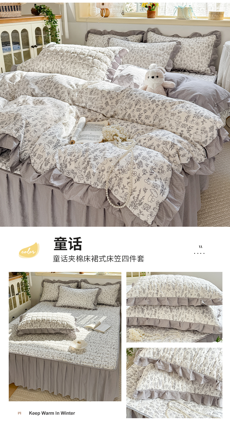 (总)禧缘家纺(原梦想家) 2026新款小清新皱皱纱木棉床裙式床笠印花四件套,彩虹,蝶梦,花田,沐春,南瓜,泡芙,甜筒,童话,兔兔,雾迟,星星,月光