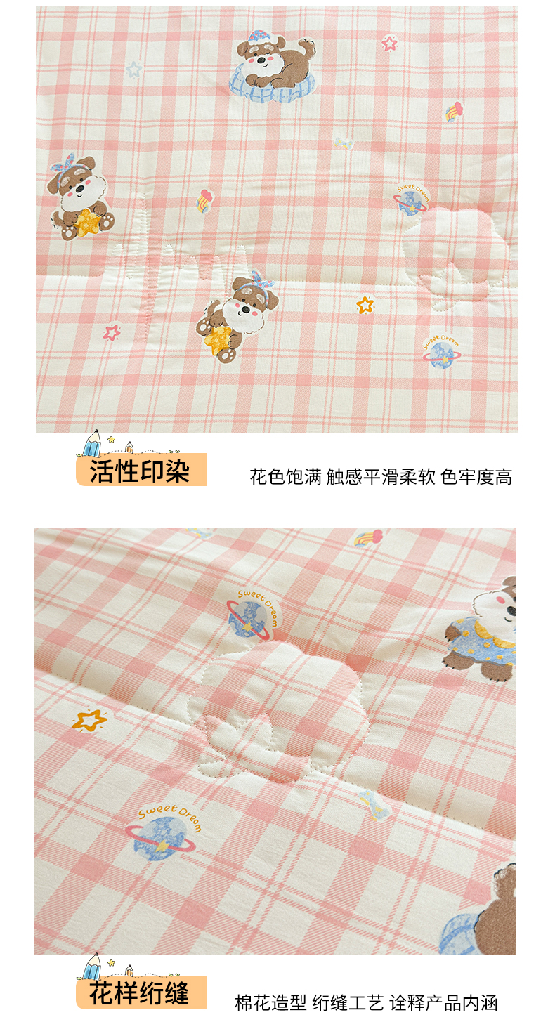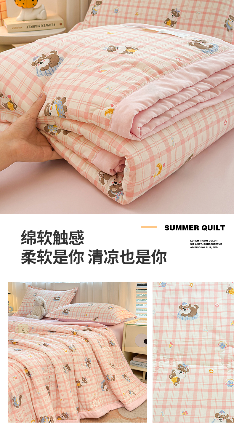 商品名称:2026新款A类新疆棉花夏凉被加宽包边水洗棉卡通印花吸湿透气棉花夏被空调被 凌香 格子狗
