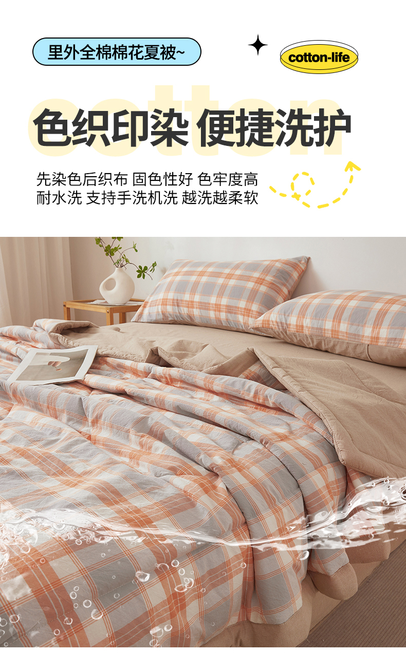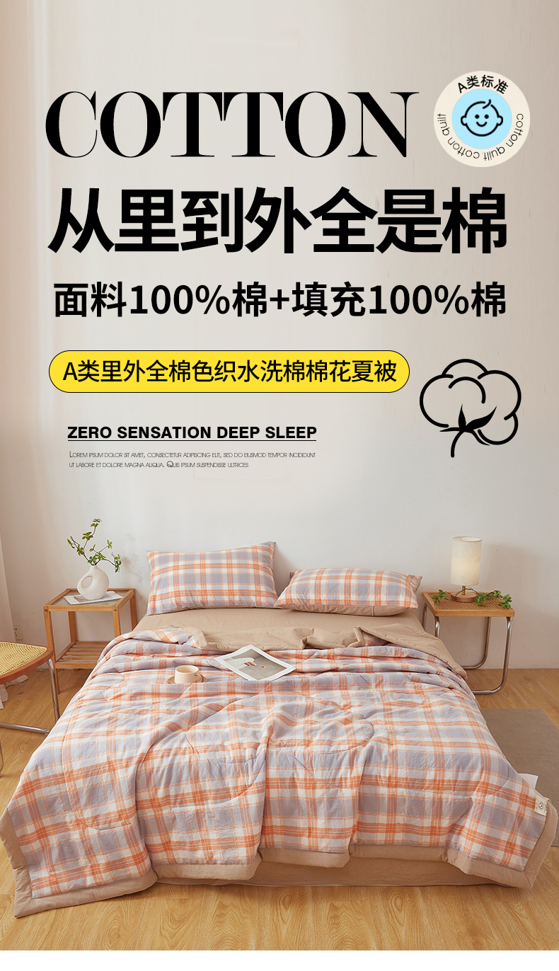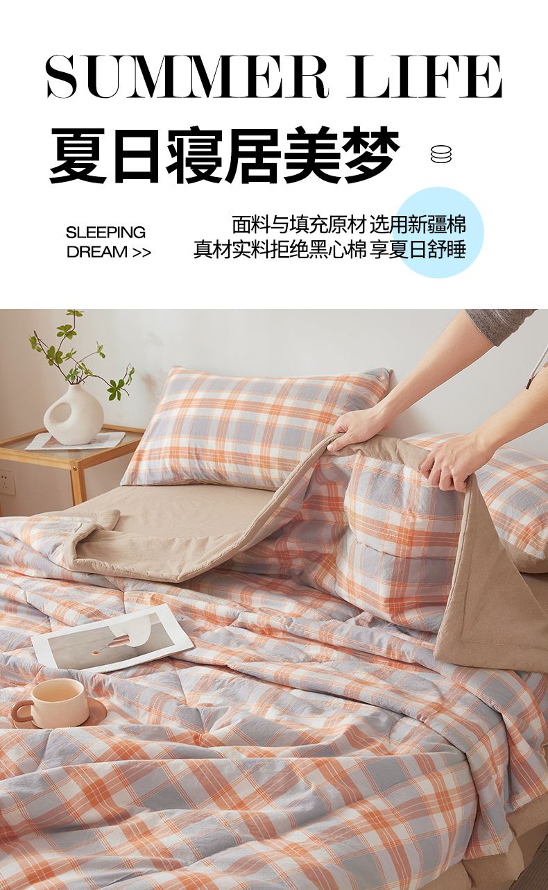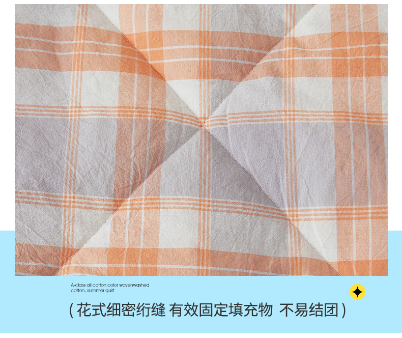 被子 > 夏被 > 2026新款A类里外全棉夏凉被100%新疆棉纯棉全棉填充无印格子款空调被全棉夏被 里外全棉-桔灰格