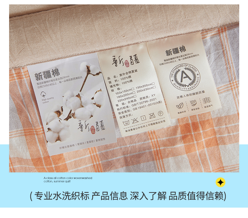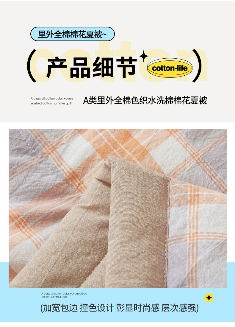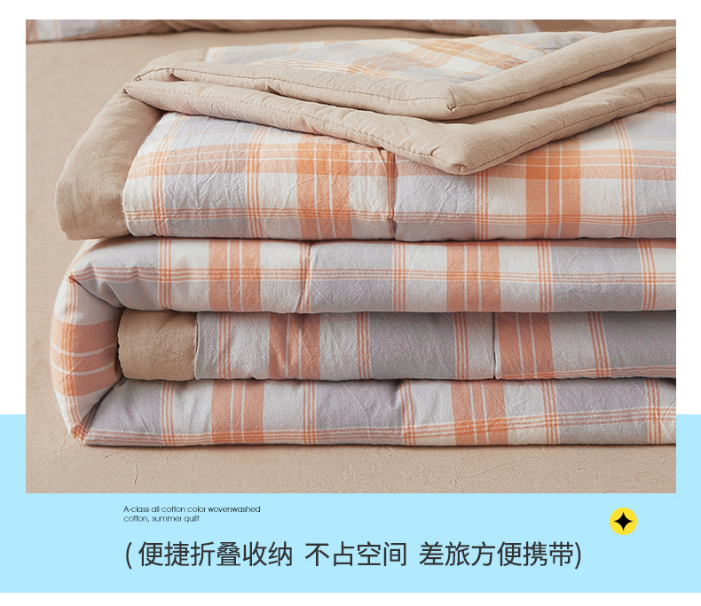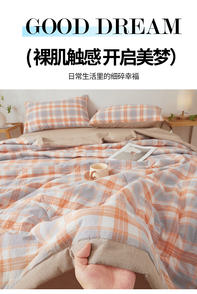 商品名称:2026新款A类里外全棉夏凉被100%新疆棉纯棉全棉填充无印格子款空调被全棉夏被 里外全棉-桔灰格