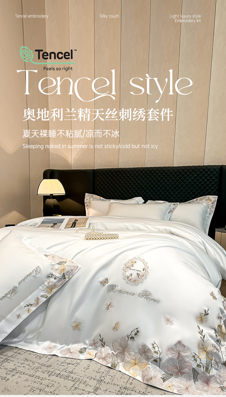 当前位置: 91家纺网 > 商品网购 > 床品套件 > 四件套 > 其它四件套 > (总)家居1号家纺 2026新款60支LF级奥地利兰精天丝四件套-倾城之恋
