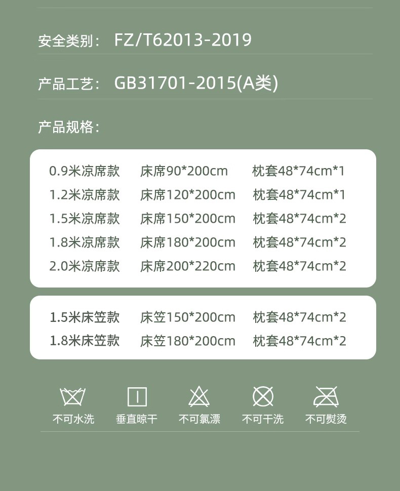 180x220cm单凉席+枕套一对 | ¥60.00 |