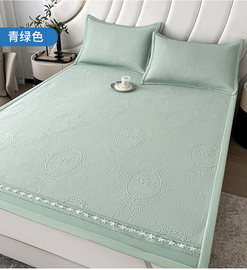 (总)梦卡迪 2026新款A类提花凉感冰凉豆豆凉席镂空花边床笠床单可机洗双人软席子三件套,冰蓝色-凉席,抹茶绿-凉席,浅粉色-凉席,浅灰色-凉席,浅米色-凉席,浅紫色-凉席,冰蓝色-床笠,抹茶绿-床笠,浅粉色-床笠,浅灰色-床笠,浅米色-床笠,浅紫色-床笠