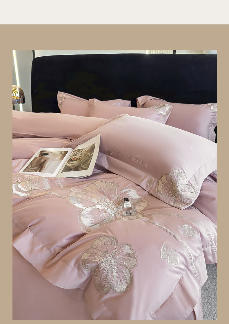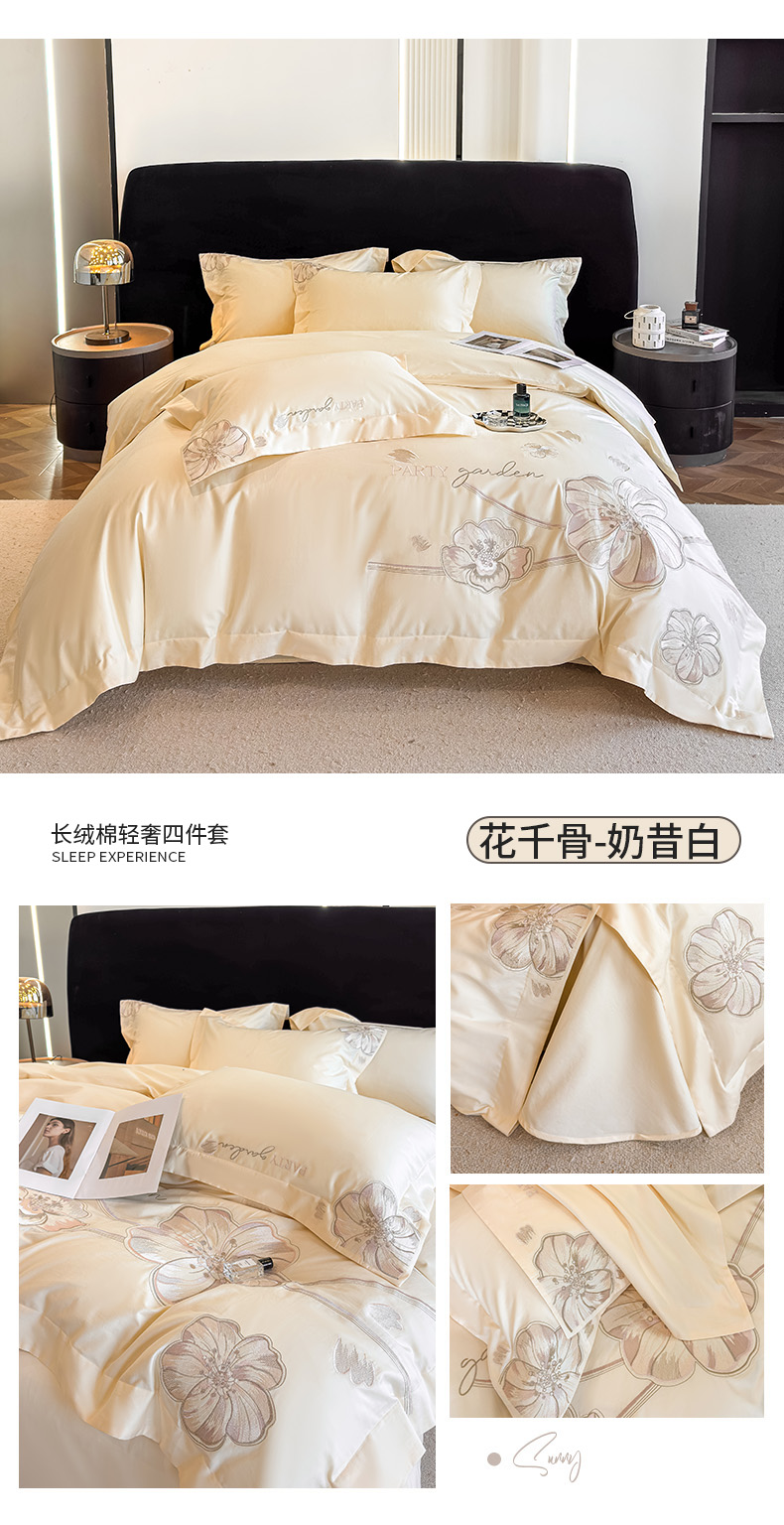 (总)女子家纺 2026新款刺绣亲肤棉轻奢四件套 花蝶,白+粉,繁星蓝,少女粉,香芋紫,星辰蓝