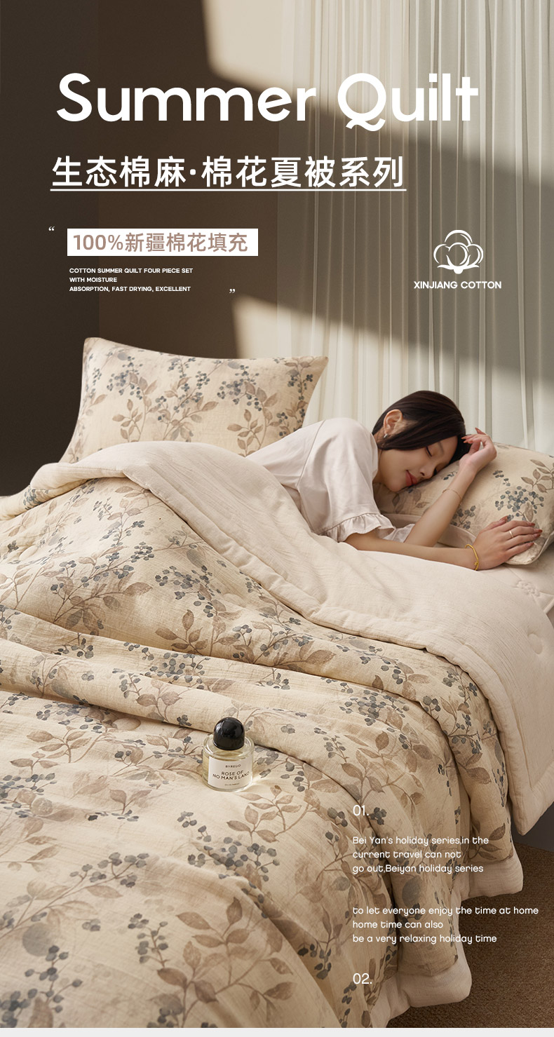商品名称:(总)吾秀家居 2026新款棉麻系列-棉麻印花棉花夏被
