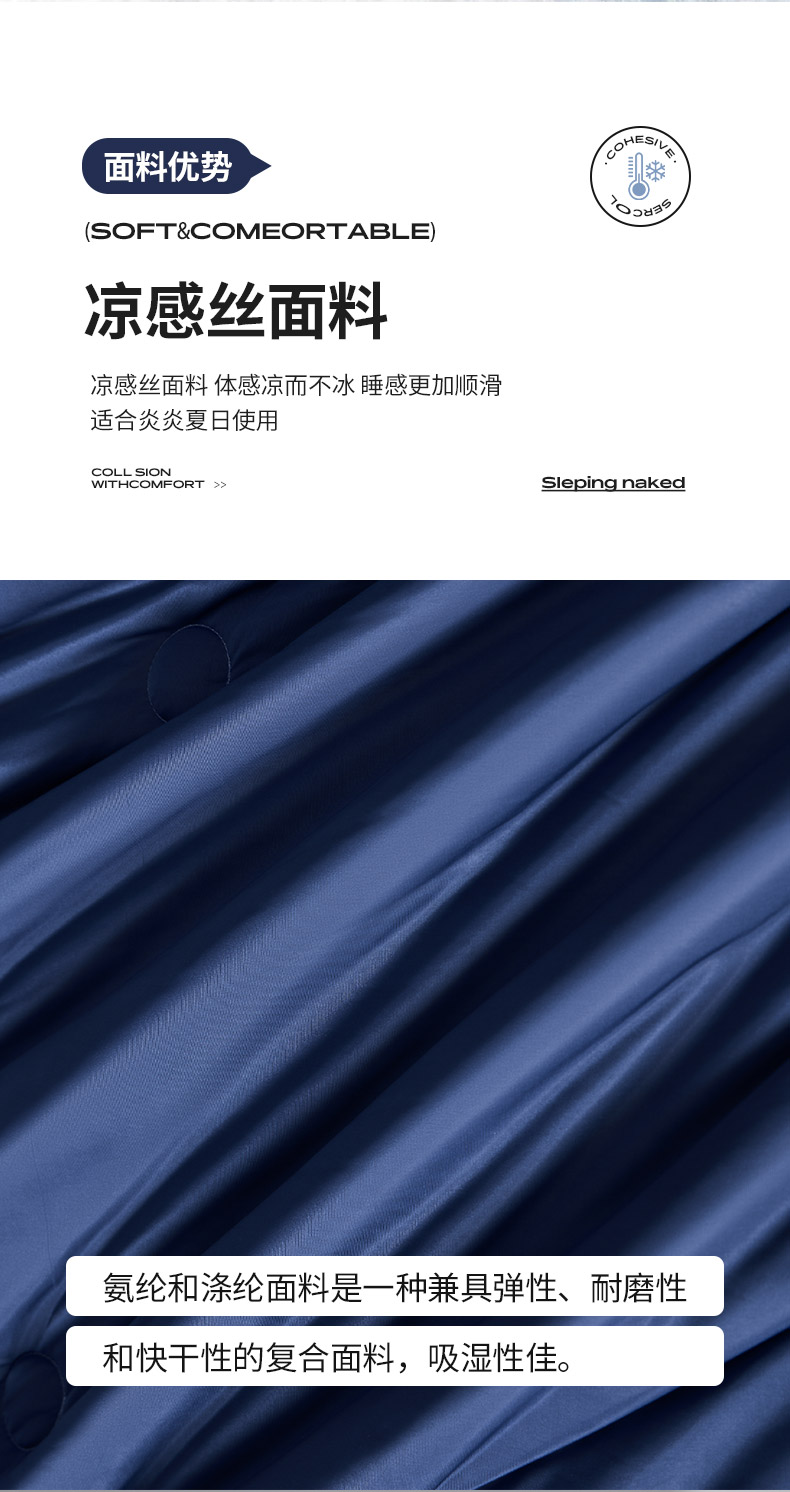 商品名称:吾秀家居 2026新款冰爽系列-凉感丝夏被四件套 蔚蓝