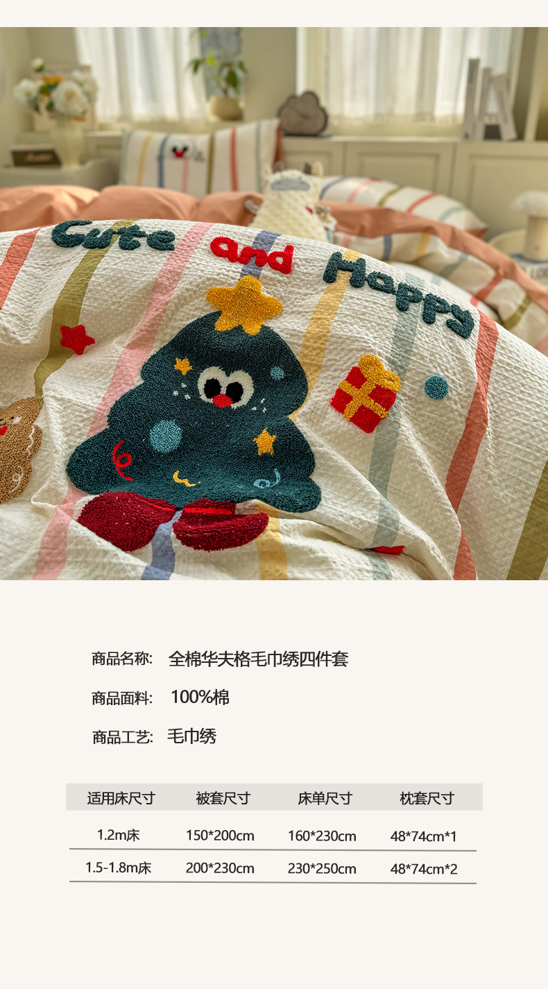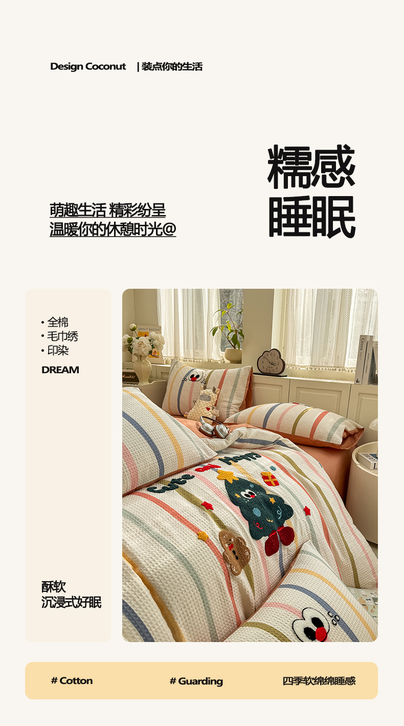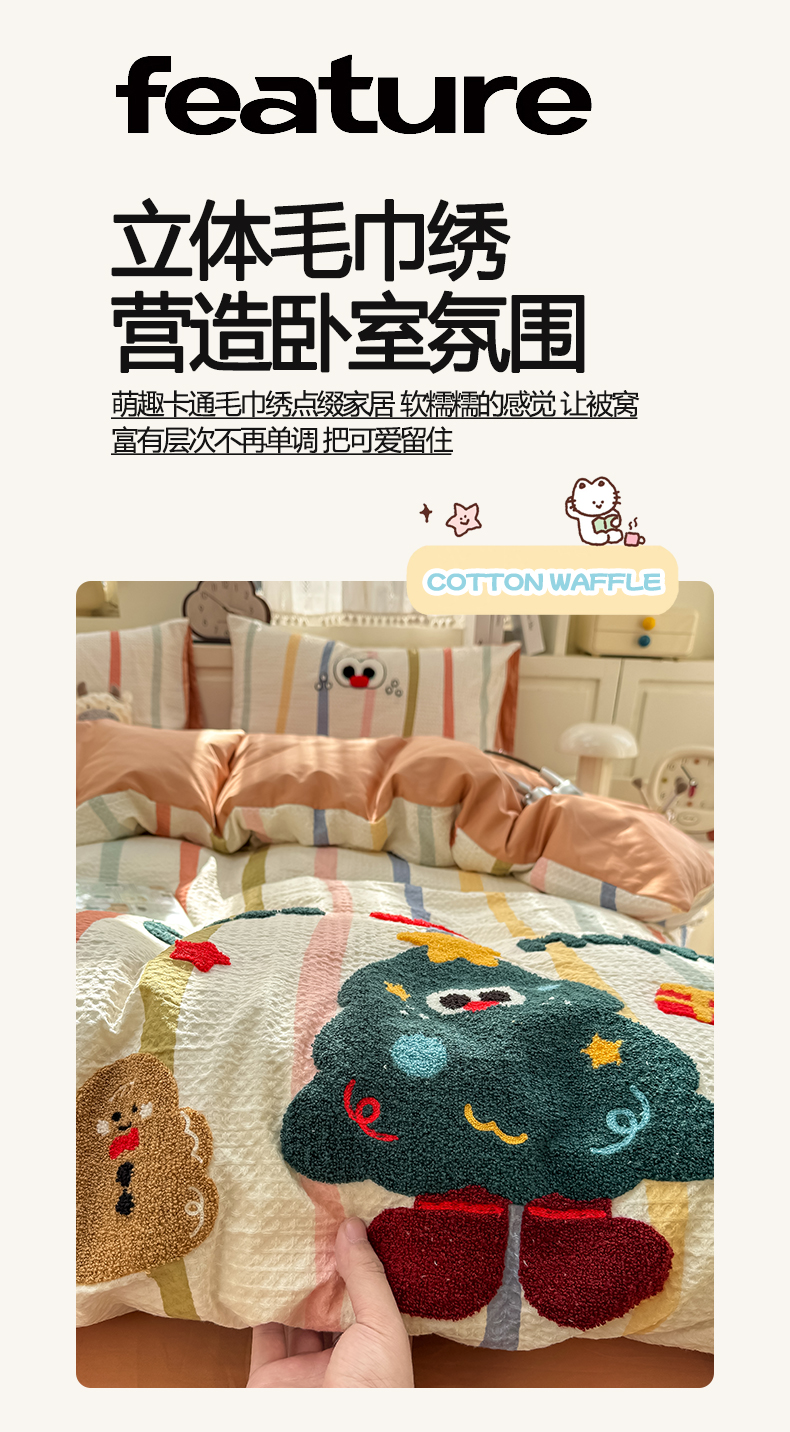 商品名称:宜家坊 2026新款全棉纯棉华夫格毛巾绣四件套 彩色日记