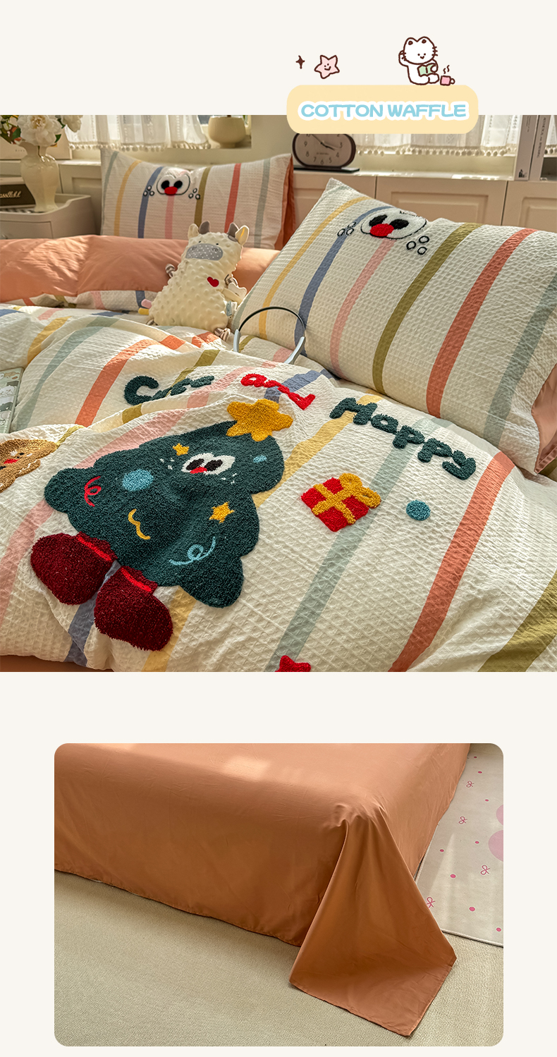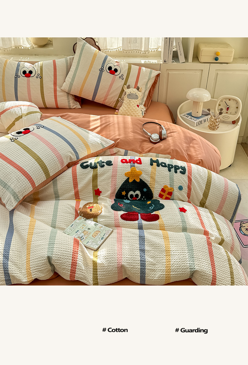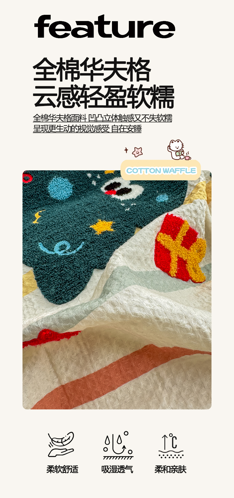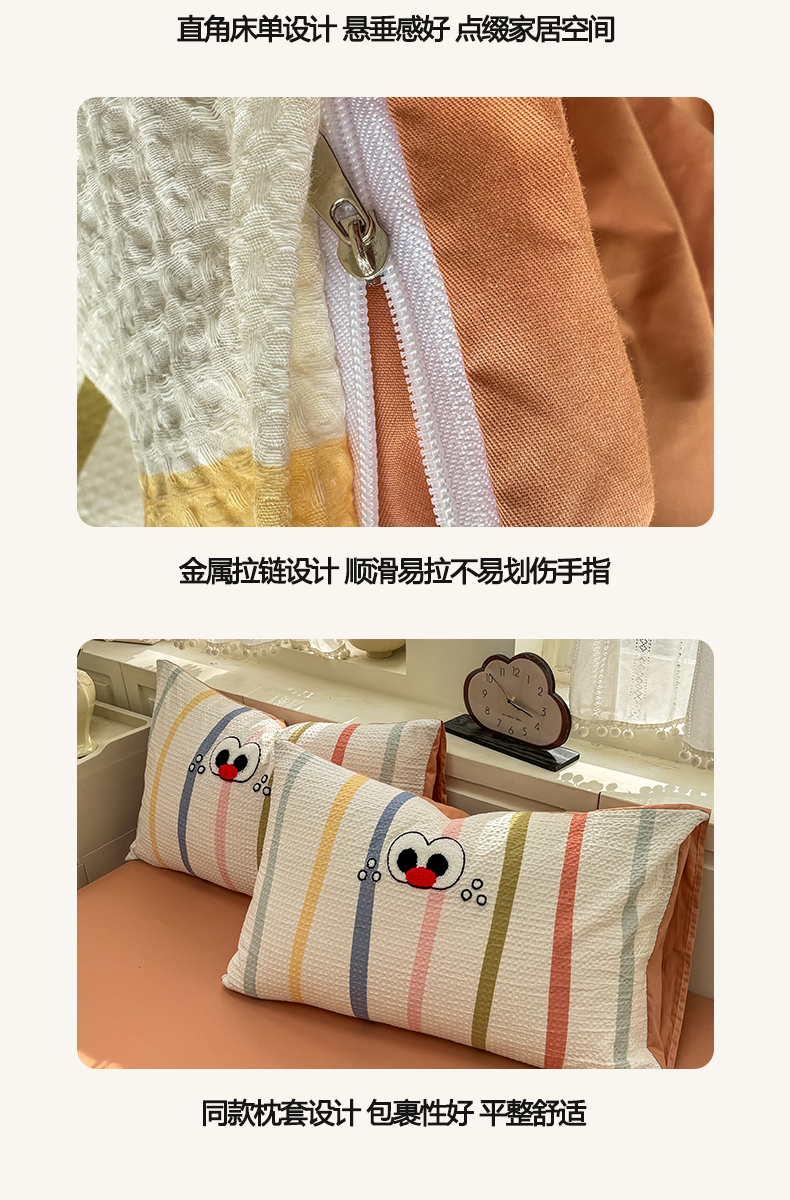 商品名称:宜家坊 2026新款全棉纯棉华夫格毛巾绣四件套 彩色日记